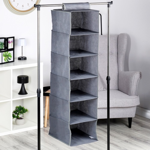 - Wiszący organizer do szafy z 6 półkami - Praktyczny organizer na buty, ubrania lub akcesoria, który pozwala optymalnie wykorzystać przestrzeń w szafie. Sześć półek umożliwia wygodne uporządkowanie przedmiotów i ułatwia utrzymanie porządku. Organizer ma wymiary 30 x 30 x 120 cm.