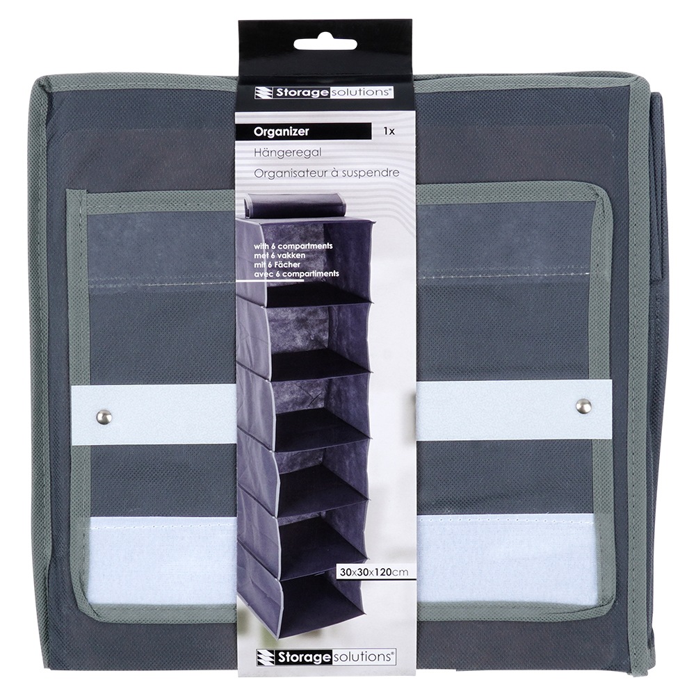 Organizer wiszący do szafy z sześcioma półkami. Idealne rozwiązanie dla osób ceniących porządek i funkcjonalność. Jego kompaktowe wymiary sprawiają, że świetnie sprawdzi się nawet w niewielkich przestrzeniach, maksymalizując dostępną powierzchnię do przechowywania. Oryginalny produkt holenderskiej marki Storage Solutions. Wyprodukowano zgodnie z europejskimi standardami.