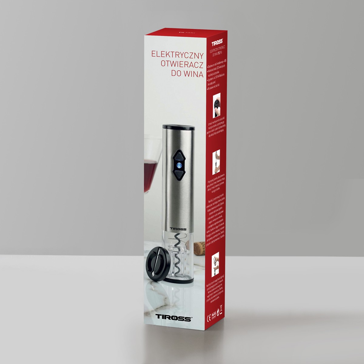 Elektryczny korkociąg do wina TIROSS – wygodne i szybkie otwieranie butelek