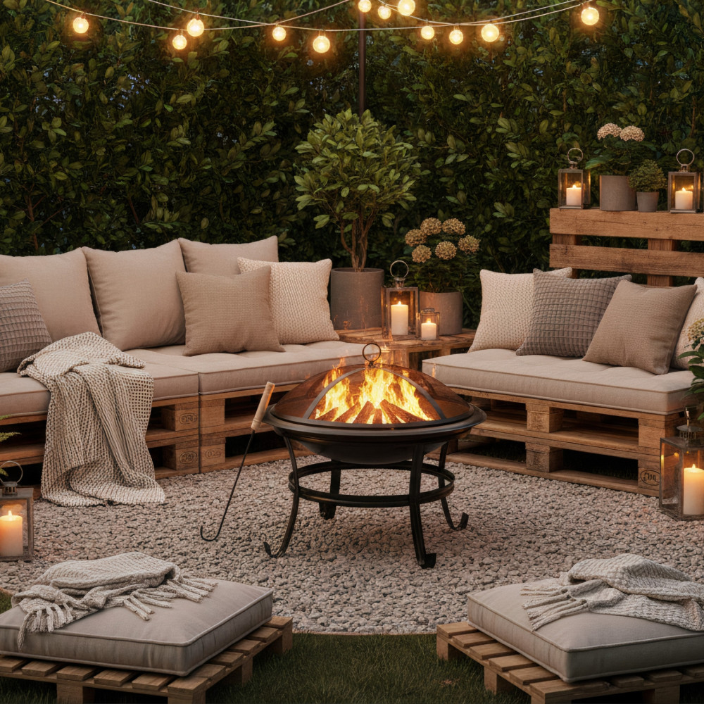 - Tworzy wyjątkowy klimat ogniska w ogrodzie lub na tarasie