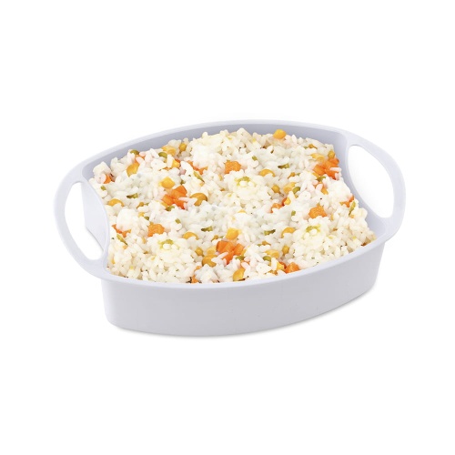 W zestawie znajduje się pojemnik z tworzywa sztucznego, który sprawdzi się idealnie do przygotowania kaszy, ryżu lub innych produktów sypkich.