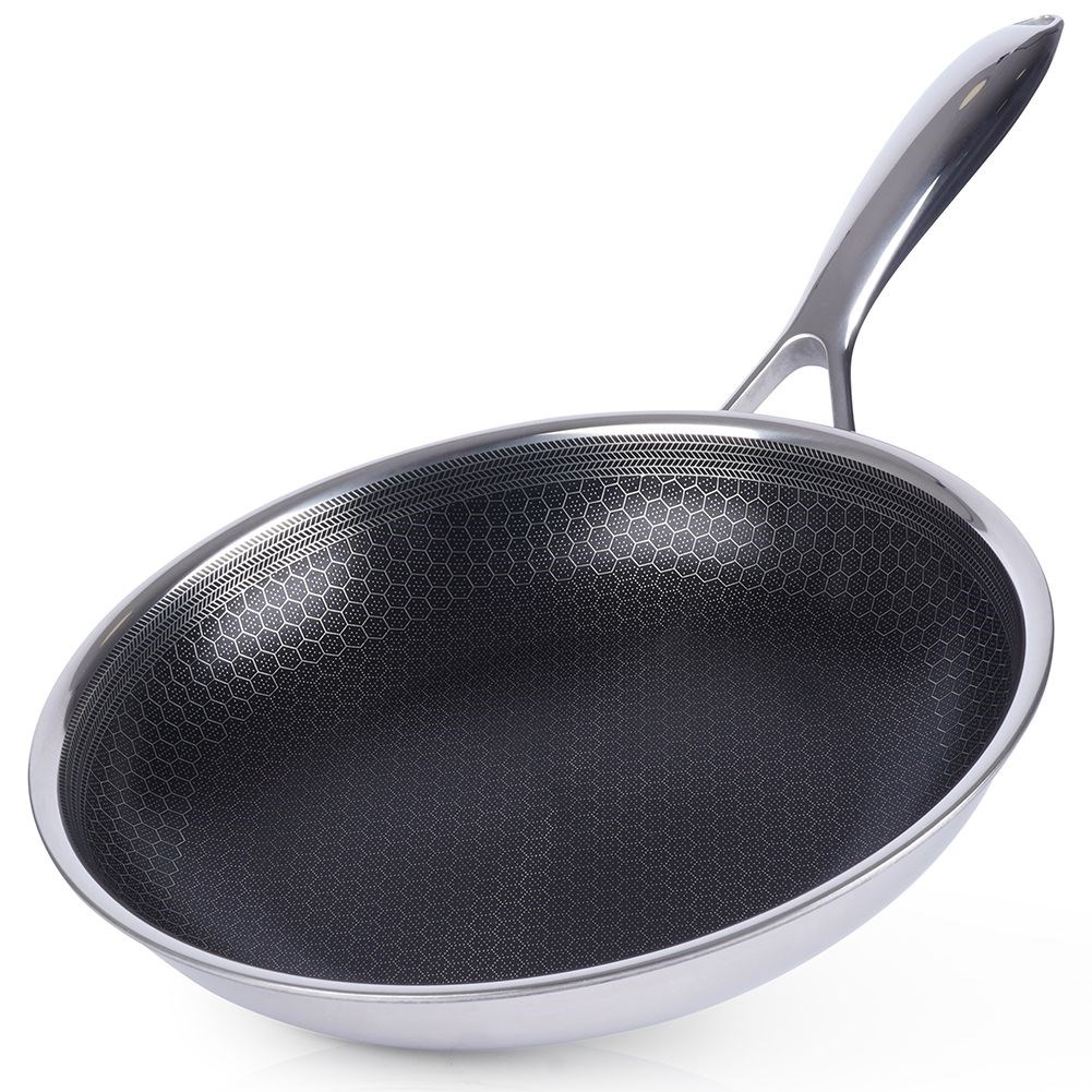 - NIEZAWODNA - Patelnia klasy premium wykonana z najwyżej jakości stali nierdzewnej z powłoką nieprzywierającą o średnicy 24 cm. Wymiary zewnętrzne: długość 45 cm, wysokość patelni 4,5 cm, wysokość z rączką 8,5 cm. Patelnia jest wytrzymała i trwała. Patelnia jest z unikatowej serii COOKCELL HYBRYD.