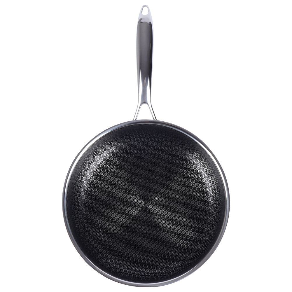 - NIEZAWODNA - Patelnia klasy premium wykonana z najwyżej jakości stali nierdzewnej z powłoką nieprzywierającą o średnicy 26 cm. Wymiary zewnętrzne: długość 47 cm, wysokość patelni 7,5 cm, wysokość z rączką 9 cm. Patelnia jest wytrzymała i trwała. Patelnia jest z unikatowej serii COOKCELL HYBRYD.