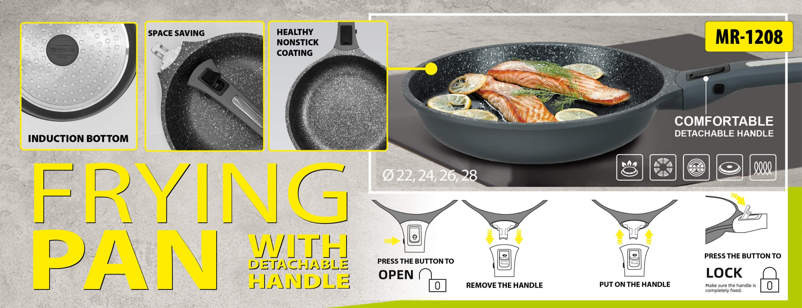 Ergonomiczna rączka z funkcją szybkiego odpinania sprawia, że patelnia jest niezwykle praktyczna: