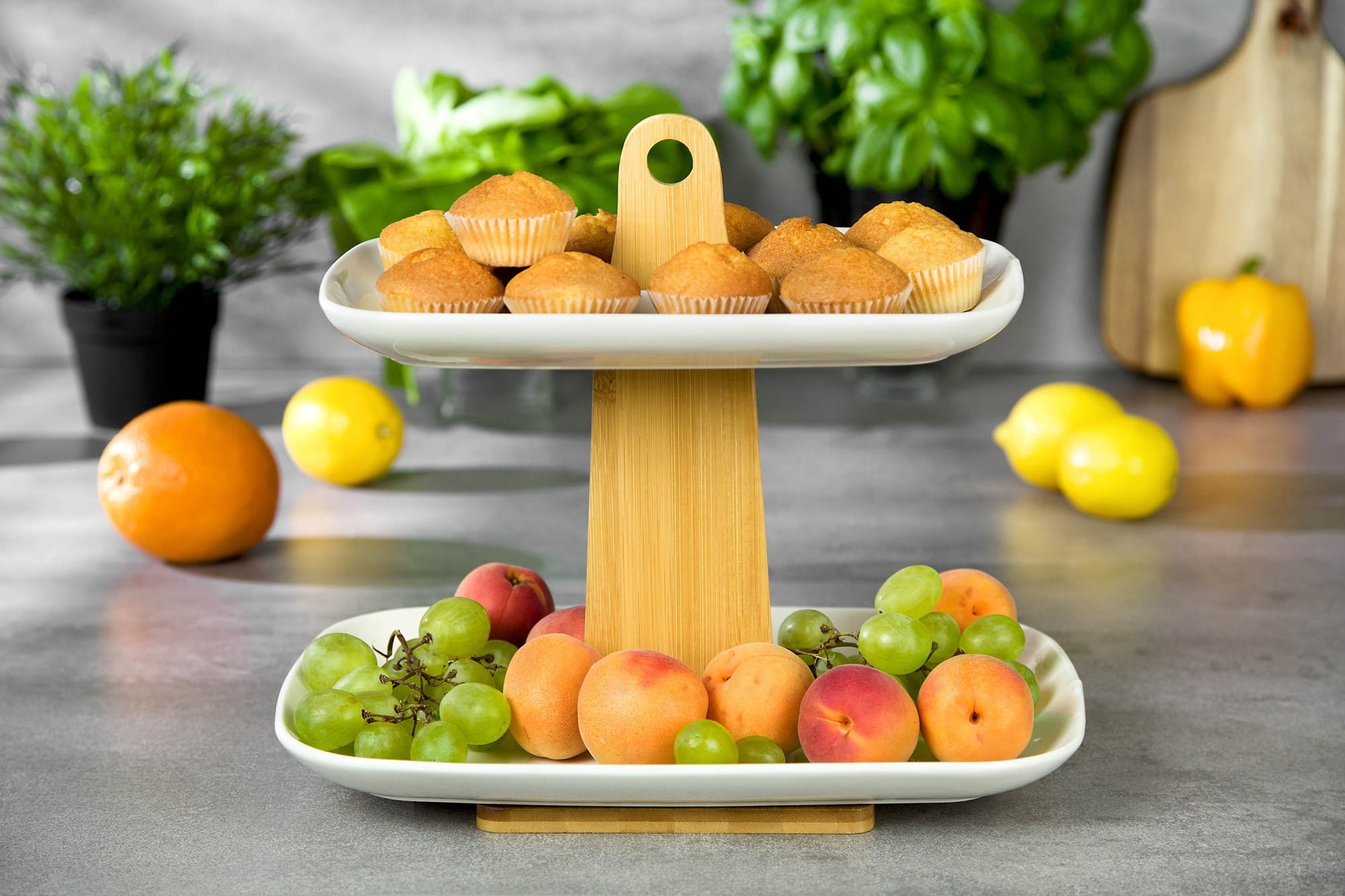 Dwupoziomowa patera na przekąski, owoce, ciasta firmy KASSEL.
