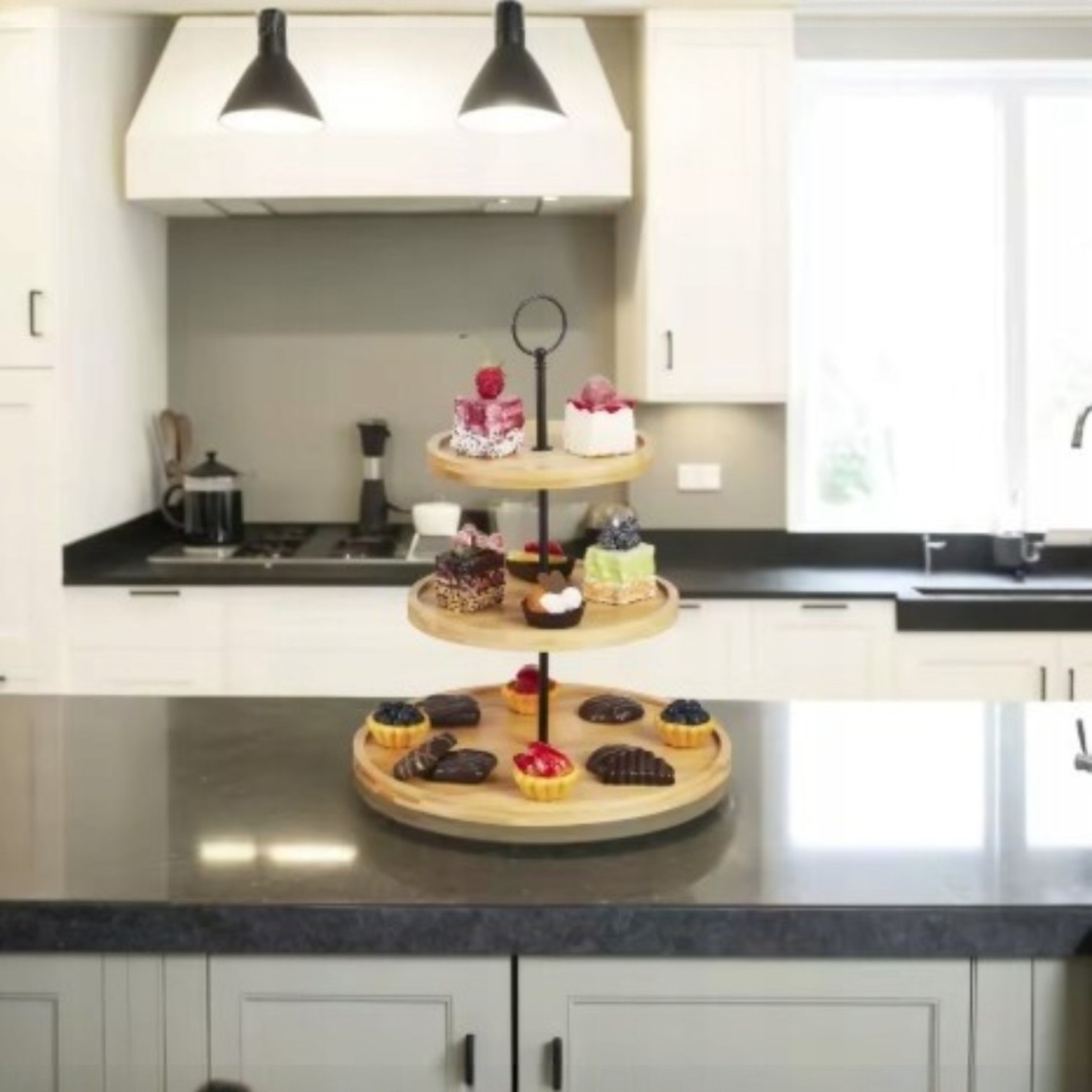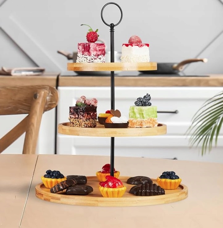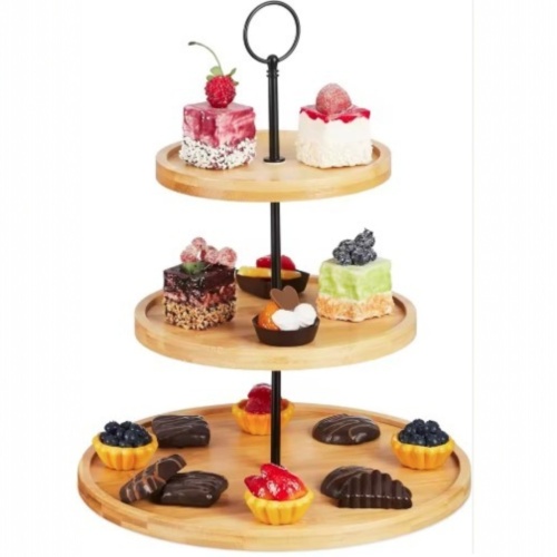 PATERA BAMBUSOWA 3-POZIOMOWA - Okrągła etażerka na ciasta, owoce i przekąski KRISBERG