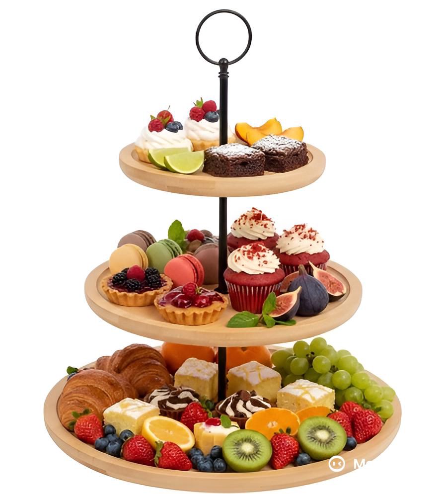 Zamień zwykłe podanie jedzenia w elegancką prezentację. 3-poziomowa patera pozwala zaoszczędzić miejsce i efektownie wyeksponować przekąski.