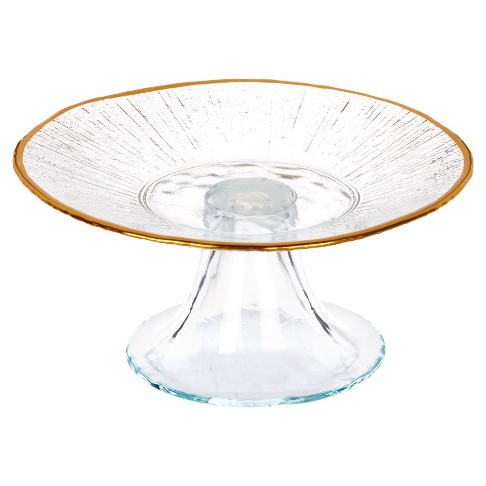Patera na tort szklana na nóżce złota 15,5 cm VILDE
