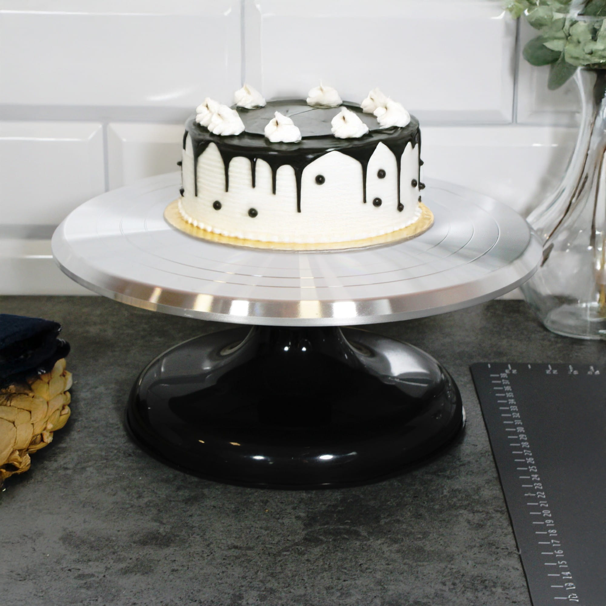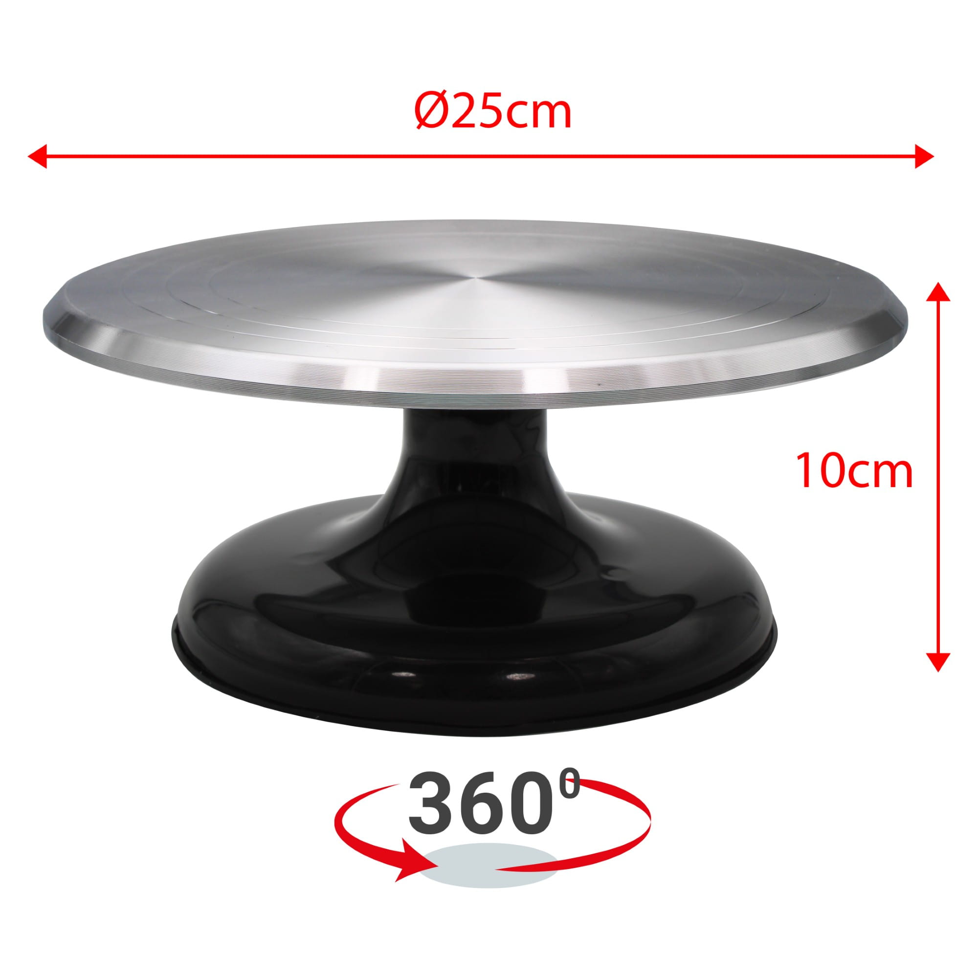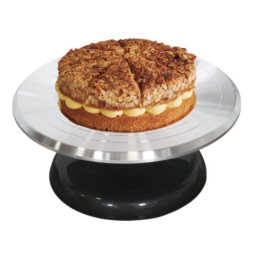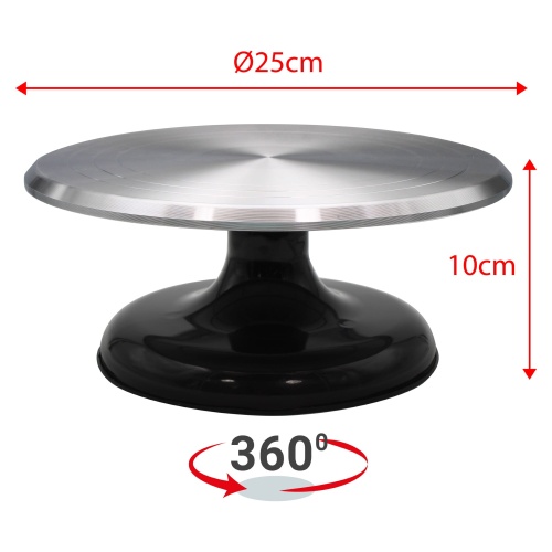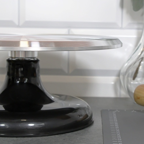 Nasz obrotowy stojak na ciasto umożliwia łatwy dostęp do wszystkich krawędzi ciasta, ułatwiając posmarowanie lukrem i serwowanie. Obraca się o 360°, zgodnie z ruchem wskazówek zegara lub przeciwnie do niego, co sprawia, że praca jest jeszcze bardziej wygodna. Posiada antypoślizgową podstawę o średnicy 18 cm, która zapewnia stabilność podczas użytkowania.