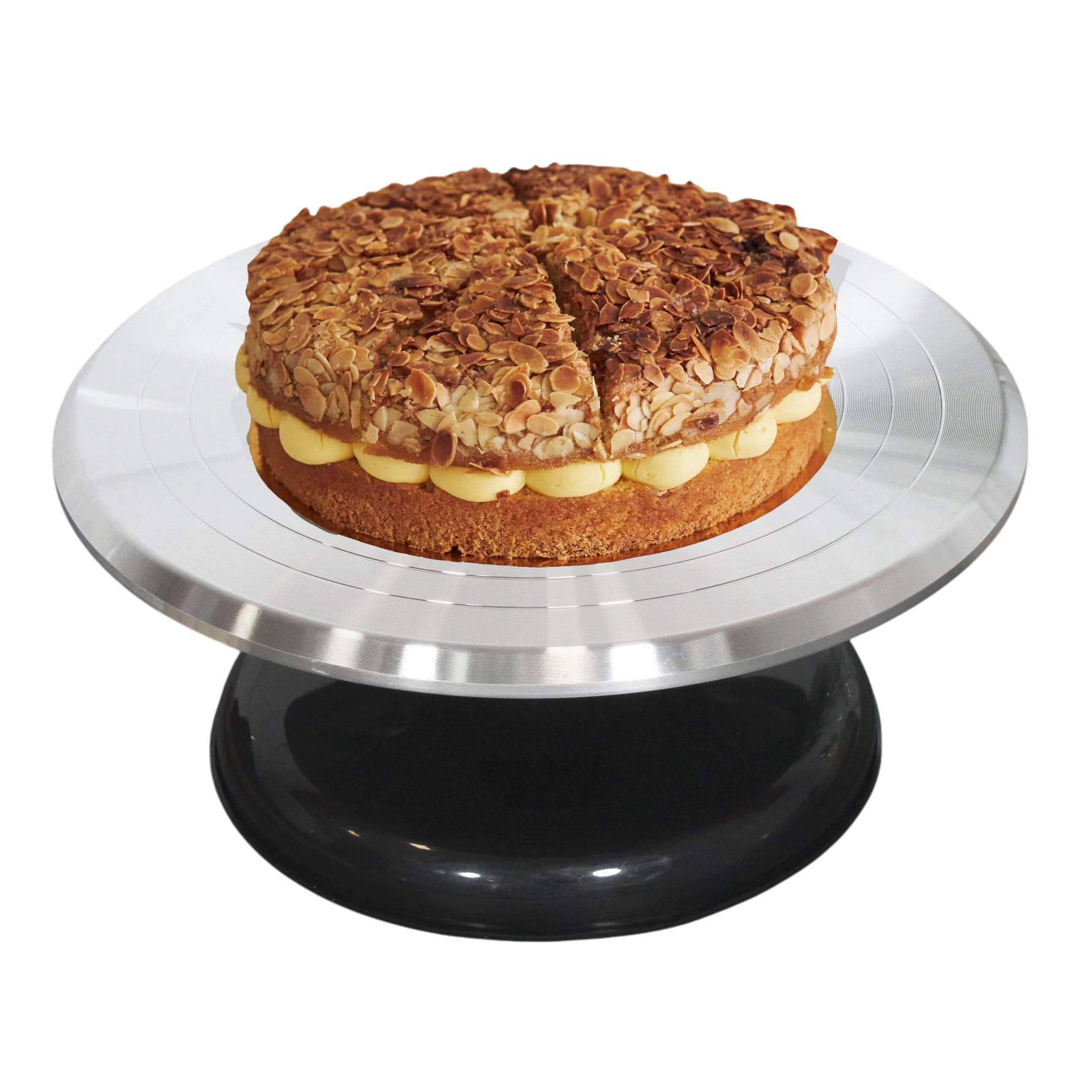 Odkryj doskonałe rozwiązanie do przygotowywania i podawania ciast dzięki Paterze Obrotowej firmy BRUNBESTE. Wykonana z wytrzymałego stopu aluminium, zapewnia doskonałą stabilność na blatach, eliminując przesuwanie się patery podczas pracy.