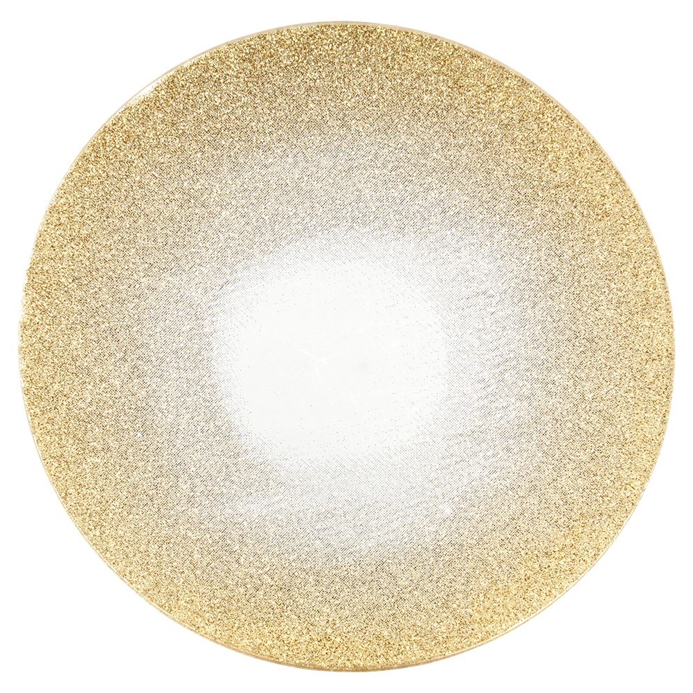 - Lustrzana z brokatowym wykończeniem - Podstawka wykonana ze szkła o lustrzanej powierzchni. Ozdobiona złotym brokatem, który dodaje jej blasku i wyjątkowego charakteru.