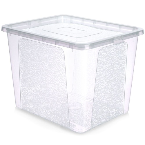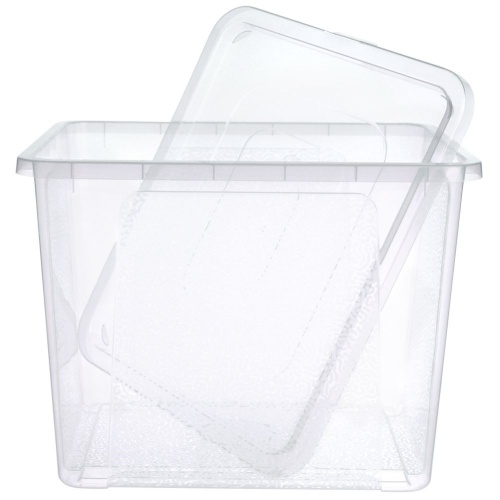 Pojemnik z pokrywą, przeznaczony do przechowywania różnych przedmiotów. Pomoże w utrzymaniu porządku. Wykonany z wytrzymałego, przezroczystego tworzywa.