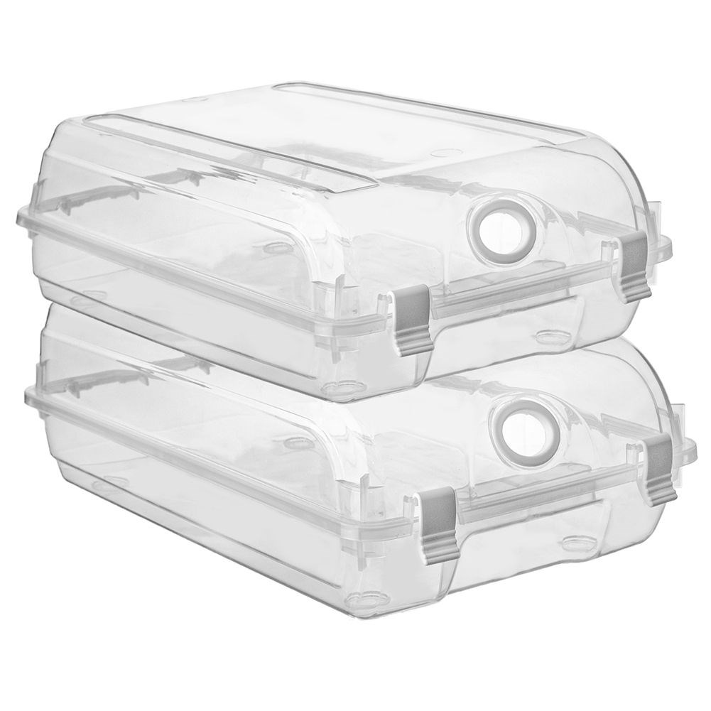 Przezroczysty pojemnik z pokrywą do przechowywania butów, pomoże w organizacji szafy oraz komody. Wyposażony w otwór wentylacyjny.