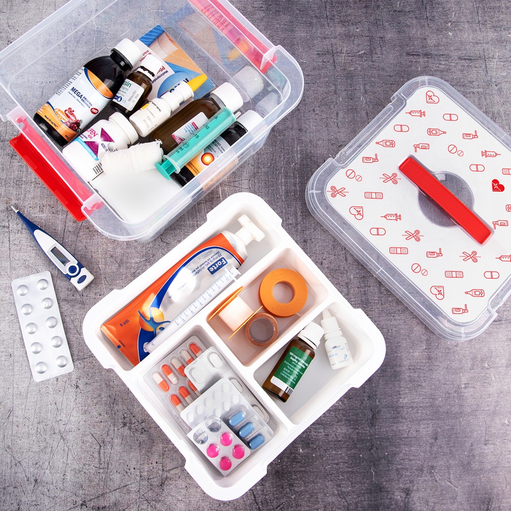 - Praktyczna organizacja domowej apteczki - Duża pojemność pojemnika pomieści całą domową apteczkę, a specjalny organizer z przegródkami w górnej części umożliwia przejrzyste i funkcjonalne posegregowanie leków, buteleczek, opakowań i drobnych akcesoriów.