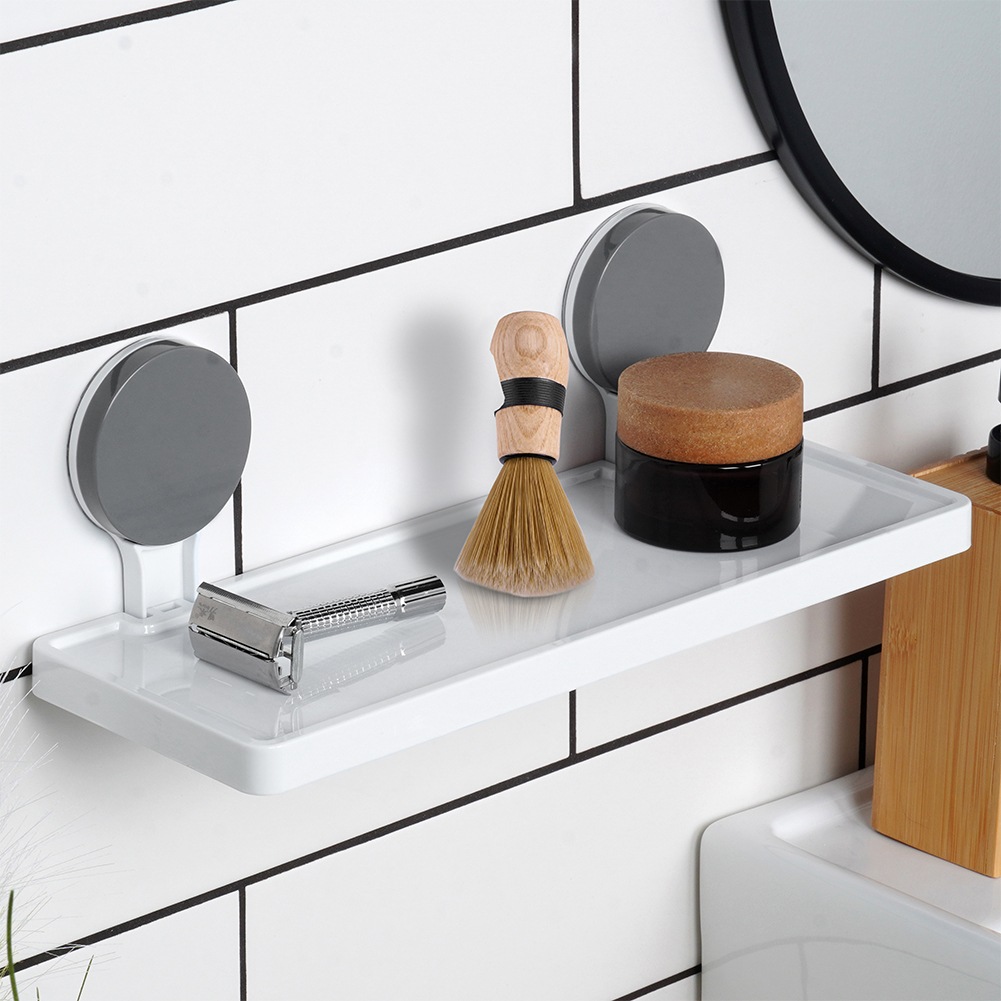 - Dodatkowa przestrzeń do przechowywania - Na półce można przechowywać różne produkty i akcesoria do pielęgnacji, takie jak żel pod prysznic, szampon, kosmetyki, gąbki czy szczotki. Posiada małe otwory na spodzie, które zapobiegają gromadzeniu się wody. Może być również wykorzystana w kuchni jako półka na przyprawy.
