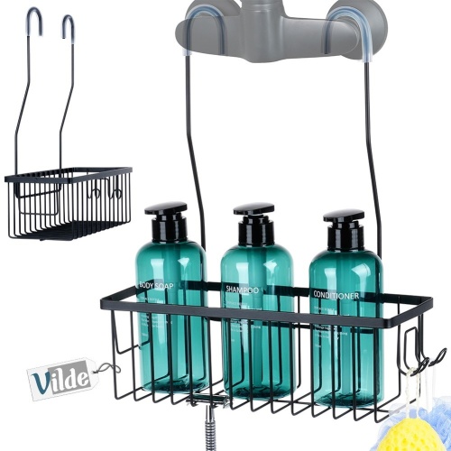 - Półka łazienkowa zawieszana na baterii prysznicowej - Przydatna półka łazienkowa w formie praktycznego koszyka, zawieszanego na kranie baterii prysznicowej. Na półce swoje miejsce znajdą niezbędne rzeczy - mydło, szampon, kosmetyki, gąbki, szczotki i inne akcesoria. Półka ma wymiary całkowite 33,5 x 12,5 x 38 cm, wysokość koszyka wynosi 11 cm.