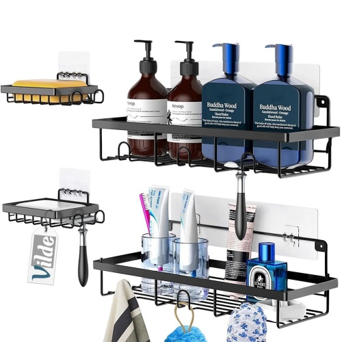 Zestaw czterech półek pod prysznic w trzech rozmiarach, idealne na kosmetyki i akcesoria łazienkowe. Wykonane z wytrzymałych materiałów. Półki utrzymane w industrialnym stylu typu loft, doskonale wpasują się w każde wnętrze łazienki. Łatwy montaż i praktyczne przechowywanie kosmetyków sprawią, że będą one bardzo praktycznym elementem wyposażenia łazienki. Oryginalny produkt marki Vilde. Wyprodukowano zgodnie z europejskimi standardami.