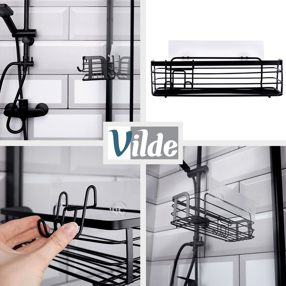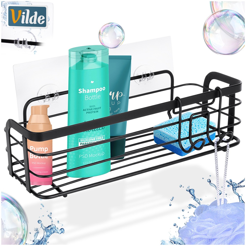 Przyklejana półka pod prysznic na kosmetyki i akcesoria łazienkowe. Wykonana z wytrzymałych materiałów. Utrzymana w industrialnym stylu typu loft. Doskonale pasuje do każdego wnętrza łazienki, ale sprawdzi się również w kuchni. Łatwy montaż i praktyczne przechowywanie kosmetyków sprawią, że będzie ona bardzo praktycznym elementem wyposażenia łazienki. UWAGA! Powierzchnia, do której klejona będzie półka, powinna być prosta i odtłuszczona. W pierwszej kolejności należy przykleić maty samoprzylepne, a po upływie co najmniej 12 godzin można zamontować na nich półkę. Oryginalny produkt marki Vilde. Wyprodukowano zgodnie z europejskimi standardami.