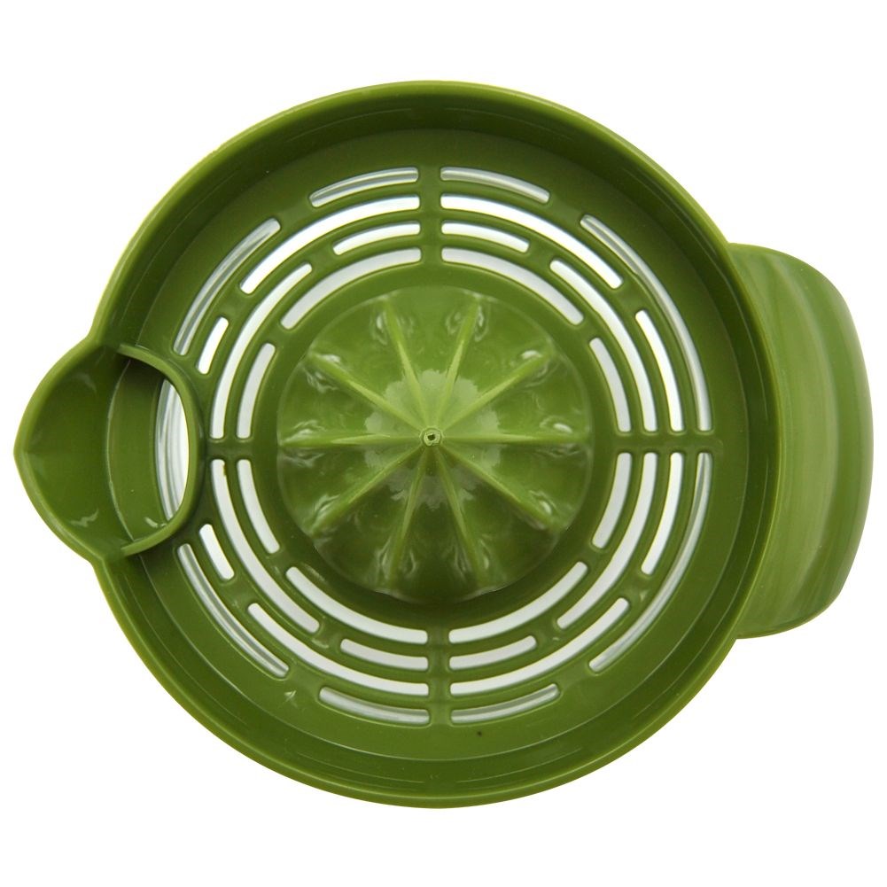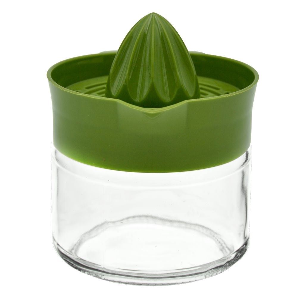 - PRAKTYCZNY - Wyciskacz do cytrusów wraz z pojemnikiem do przechowywania soku. Pomaga wycisnąć sok z cytryny, pomarańczy lub mandarynki. Wyciskacz ma wymiary 11,5 x 8,5 cm.