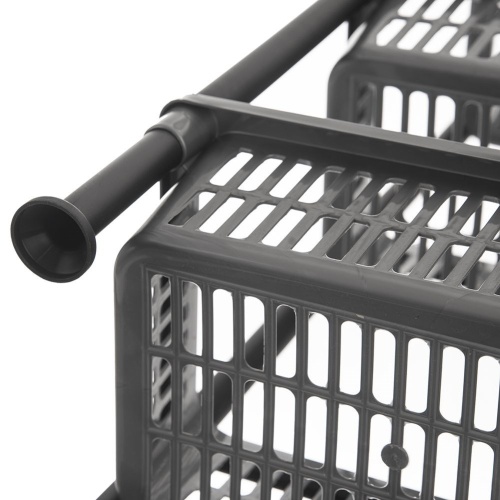 - WYTRZYMAŁY - Wykonany z lekkiego i wytrzymałego tworzywa. Koszyki w szarym kolorze a stelaż w kolorze czarnym.