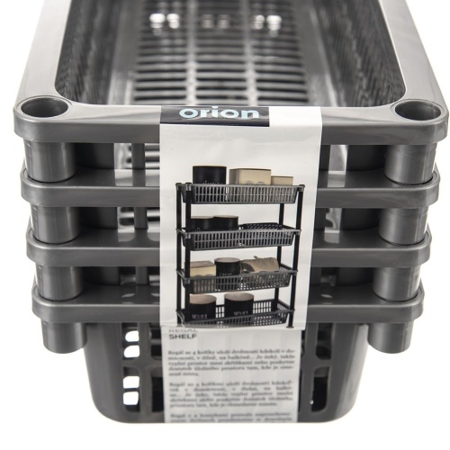 Praktyczny czteropiętrowy regał. Regał ma wymiary 83 x 19,5 x 50 cm i jest wyposażony w cztery koszyki w szarym kolorze każdy o wymiarach 50 x 20 x 10 cm. Regał jest niezwykle lekki wykonany z wytrzymałego tworzywa. Odporny na wilgoć. Łatwy montaż, a w przypadku nieużywania regału możliwość złożenia go do małych rozmiarów. Jest bardzo poręczny i wąski, dzięki temu nie zajmuje dużo miejsca. Niezwykle przydatny w domu, ale również w warsztacie, czy biurze. Świetnie sprawdzi się również na balkonie, tarasie. Możemy przechowywać w nim różne przedmioty. Oryginalny produkt marki Orion. Wyprodukowano zgodnie z europejskimi standardami.