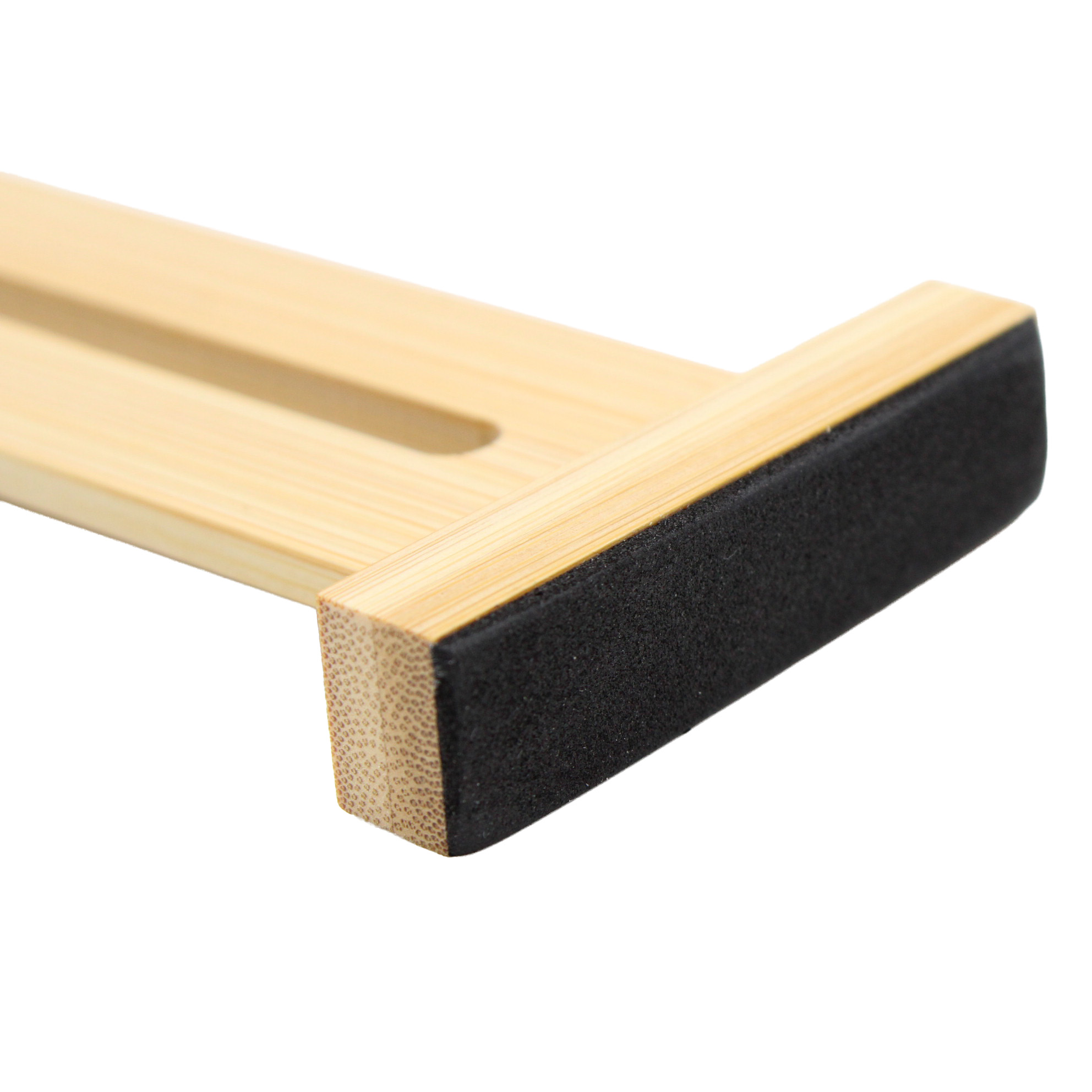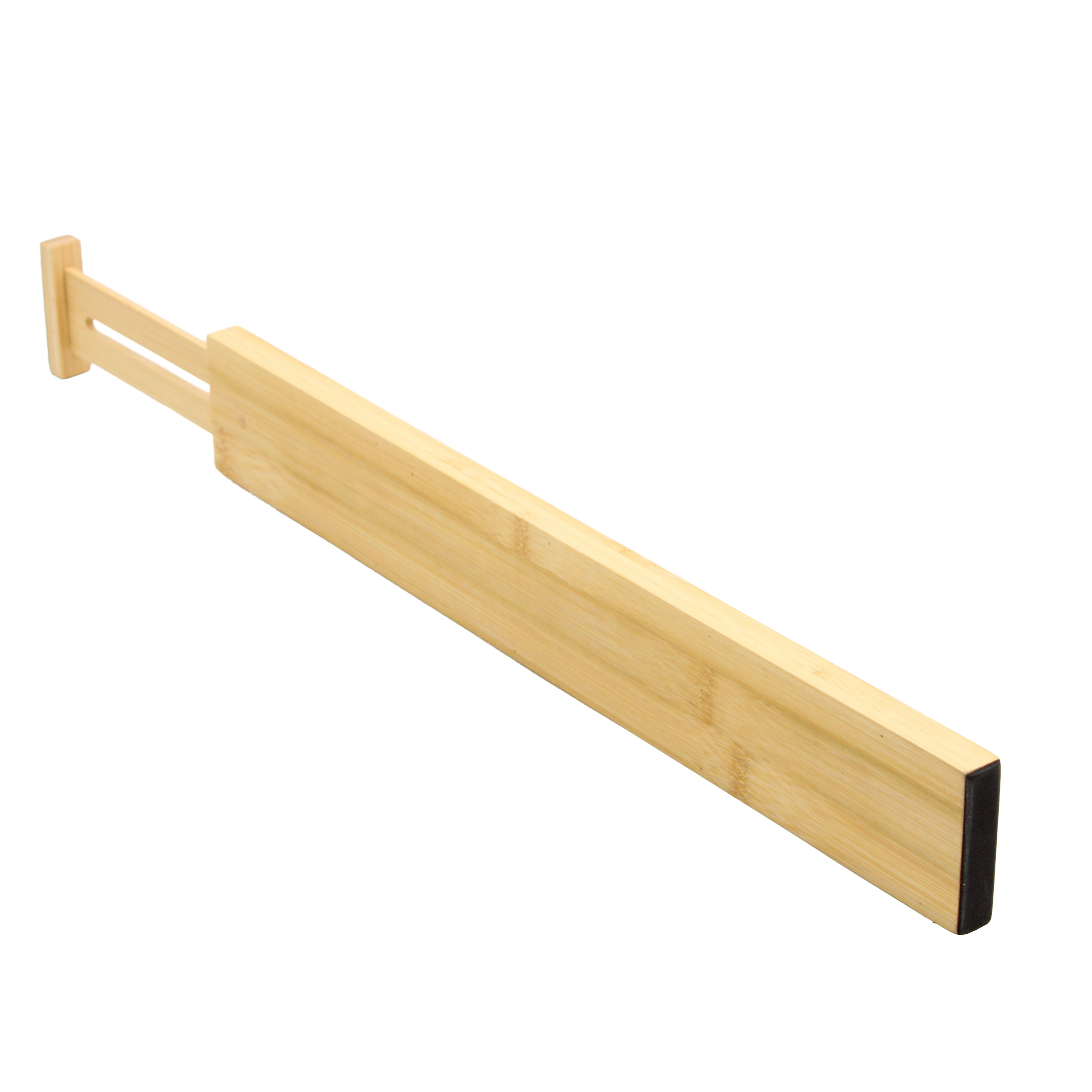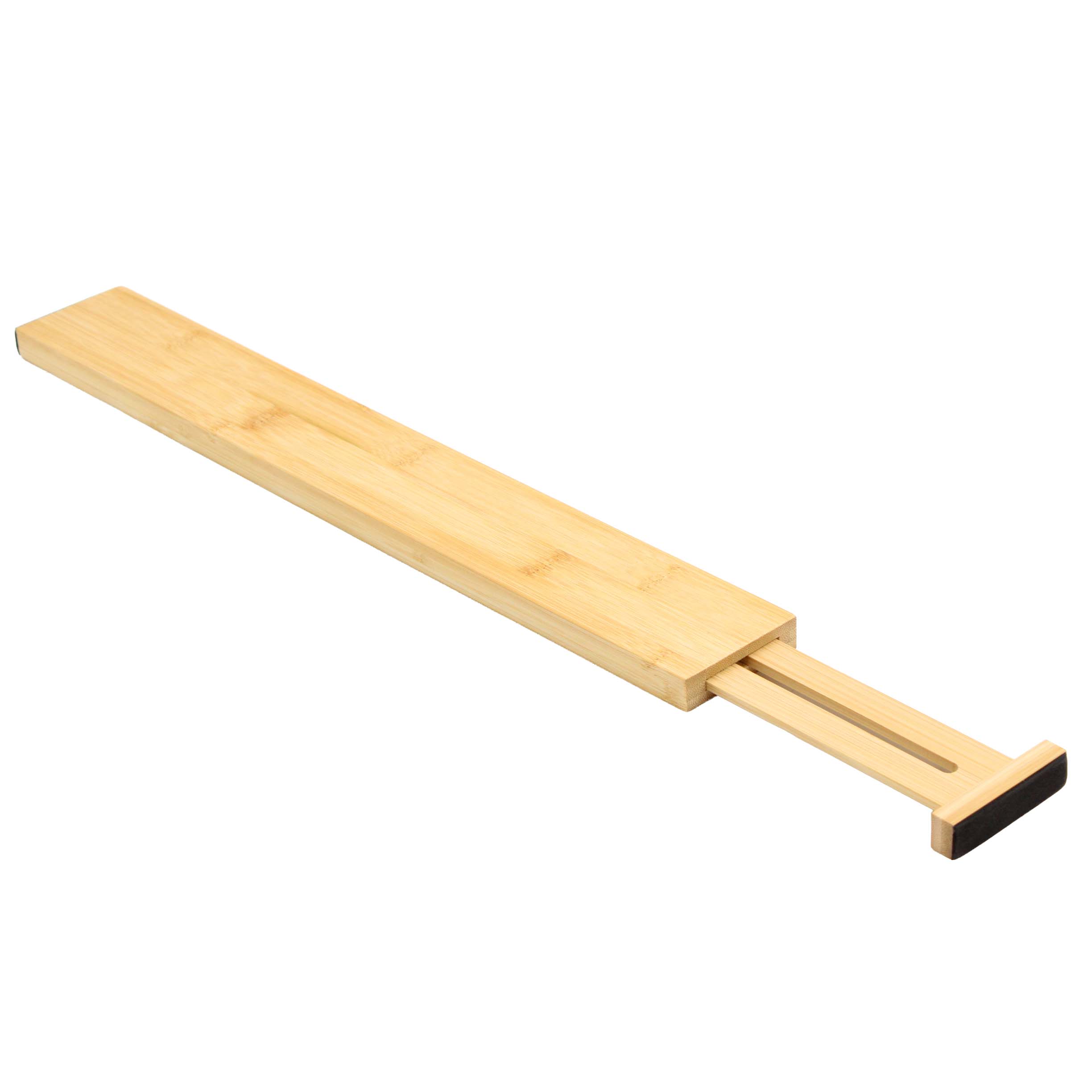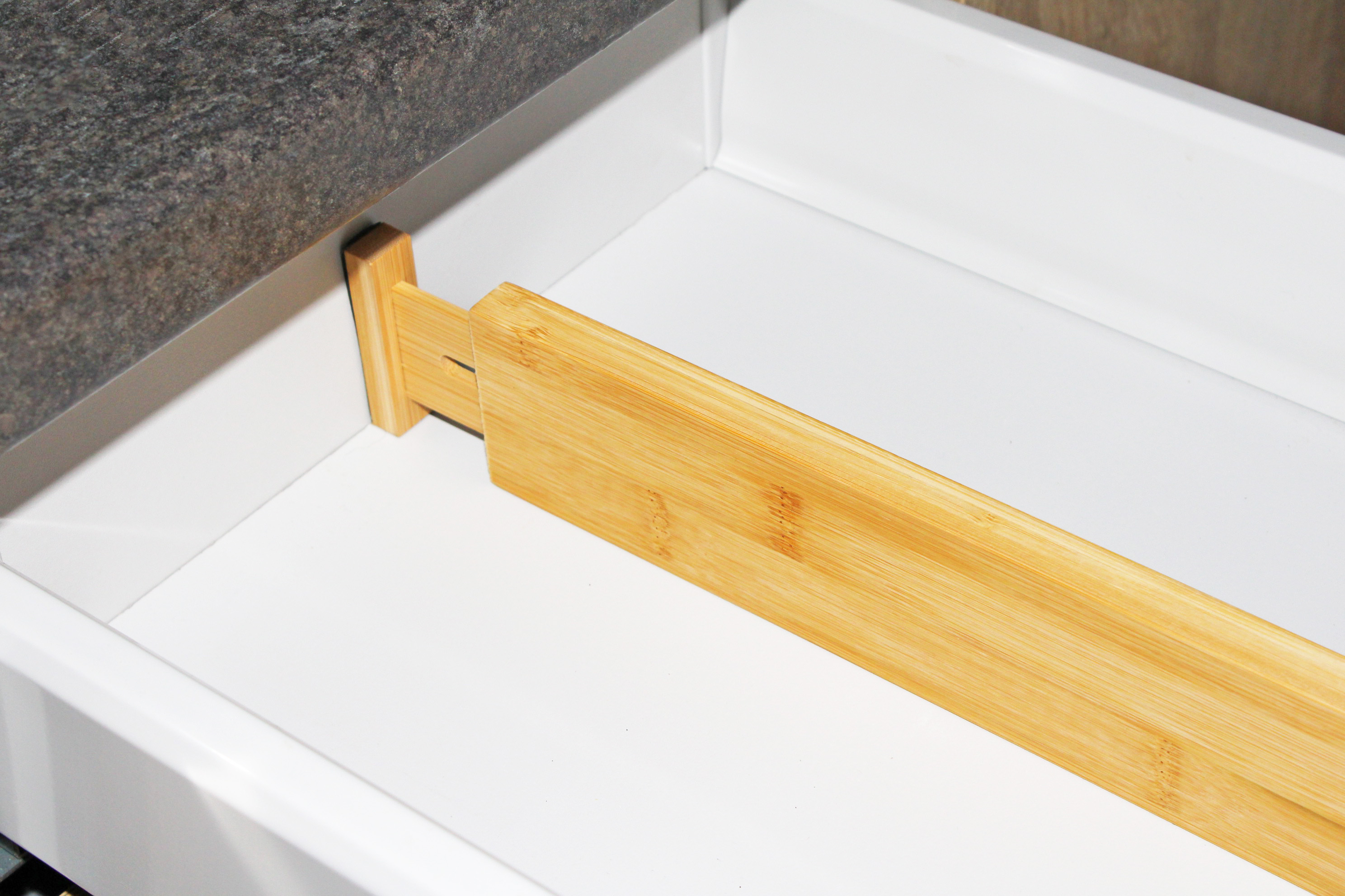Wykonany z naturalnego bambusa, łączy estetyczny wygląd z trwałością. Dzięki rozsuwanej konstrukcji można go dopasować do różnych szerokości szuflad. Końcówki zabezpieczone są elementami ochronnymi, które stabilizują separator i chronią wnętrze szuflady przed zarysowaniami.