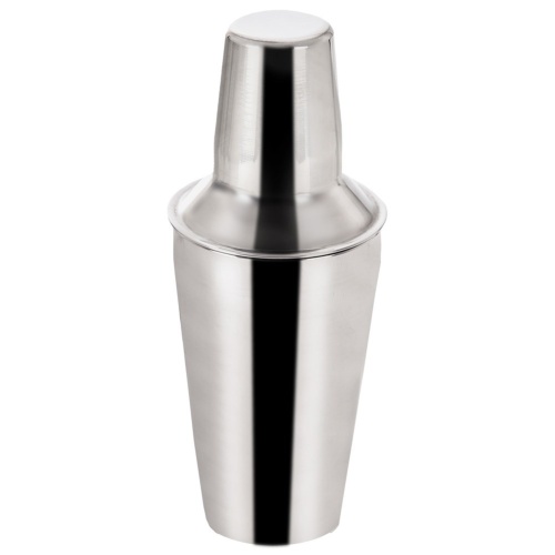 Klasyczny shaker barmański o pojemności 520 ml, w zestawie z sitkiem oraz kieliszkiem w formie pokrywki. Idealny do przygotowania koktajli oraz drinków.