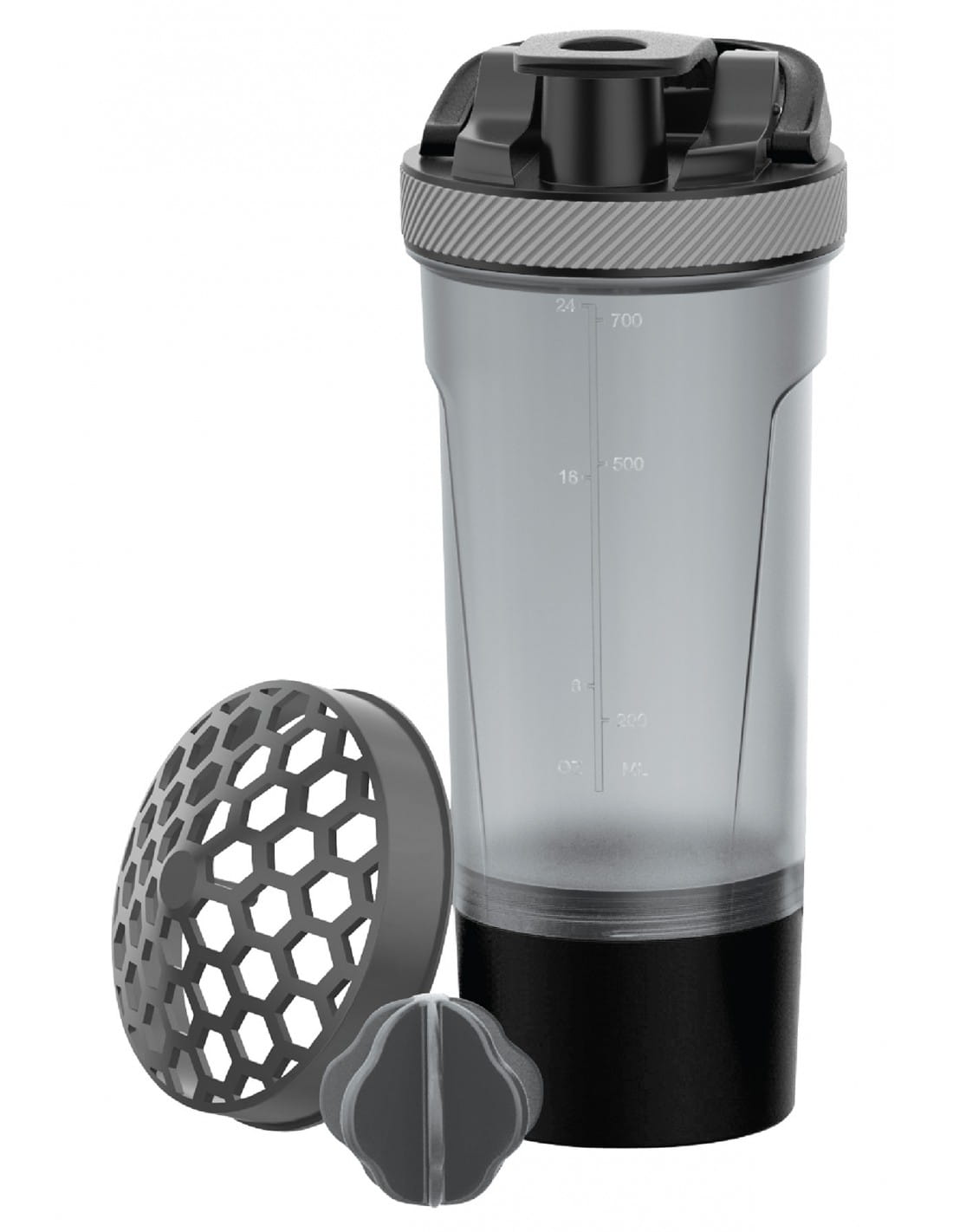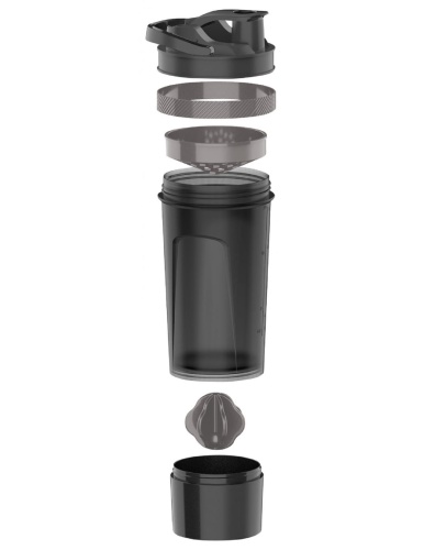 Specjalnie zaprojektowany kształt butelki, filtr siatkowy i dodatkowa kulka pozwalają na dokładne i szybkie mieszanie za pomocą potrząsania.