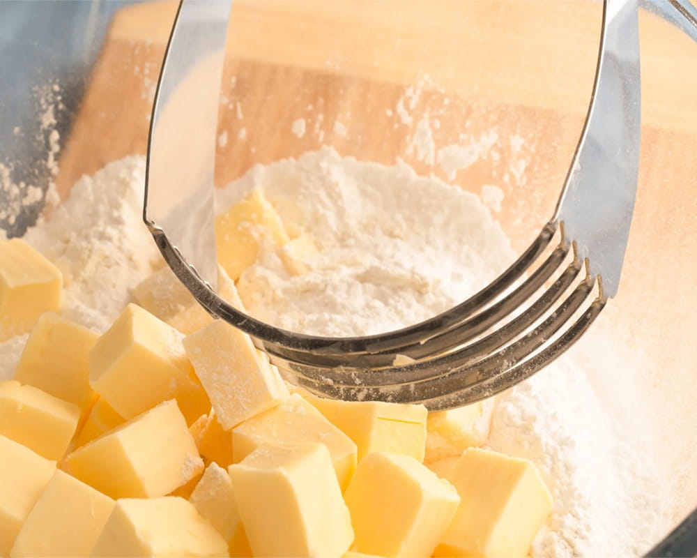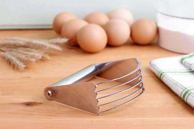 Produkt wyposażony w 5 ostrzy, które szybko wymieszają kawałki masła z mąką i innymi składnikami.