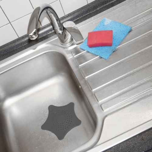 - PRAKTYCZNE - Sitko do zlewu w kształcie pięcioramiennej gwiazdy, pełniące rolę filtra. Chroni aby resztki jedzenia i inne zanieczyszczenia kuchenne nie dostawały się do zlewu. Sitko ma wymiary 16 x 16 cm.
