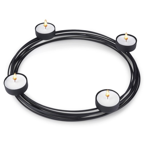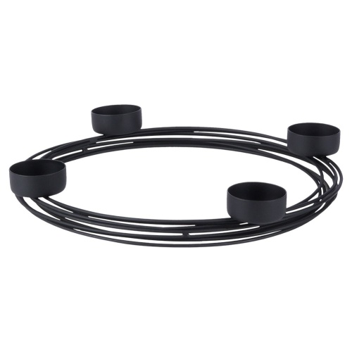 Świecznik na cztery świeczki tealight. Wykonany z metalu w kolorze czarnym. Świetnie sprawdzi się jako świecznik adwentowy. Utrzymany w industrialnym stylu typu loft.