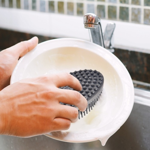 Uniwersalna szczotka silikonowa, która może pełnić rolę zmywaka kuchennego, szczotki do mycia różnych powierzchni w kuchni i łazience a także sprawdzi się jako szczotka do masażu.