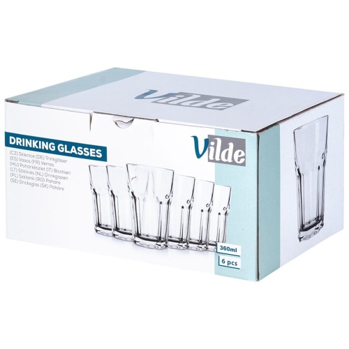 Szklanki do napojów zimnych wysokie 360ml 6 sztuk zestaw szklanek VILDE 139615