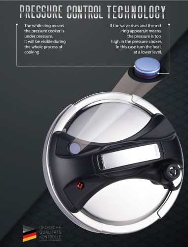 Z tym dogodnym szybkowarem, możesz przygotować zdrowe, nisko tłuszczowe posiłki w jednej trzeciej czasu w porównaniu z konwencjonalnym gotowaniem. Jedną z najważniejszych zalet jest to, że możesz ugotować zdrowe, nisko tłuszczowe potrawy zachowując przy tym podstawowe witaminy i składniki odżywcze oszczędzając równocześnie energię! Stal nierdzewna 18/10 nie wchodzi w reakcję z gotowanymi produktami. Szybkowar tenposiada potrójne zabezpieczenie - zawory kontroli ciśnienia, dwa samodzielne zawory do wyrównania ciśnienia oraz blokada zabezpieczająca na uchwycie.