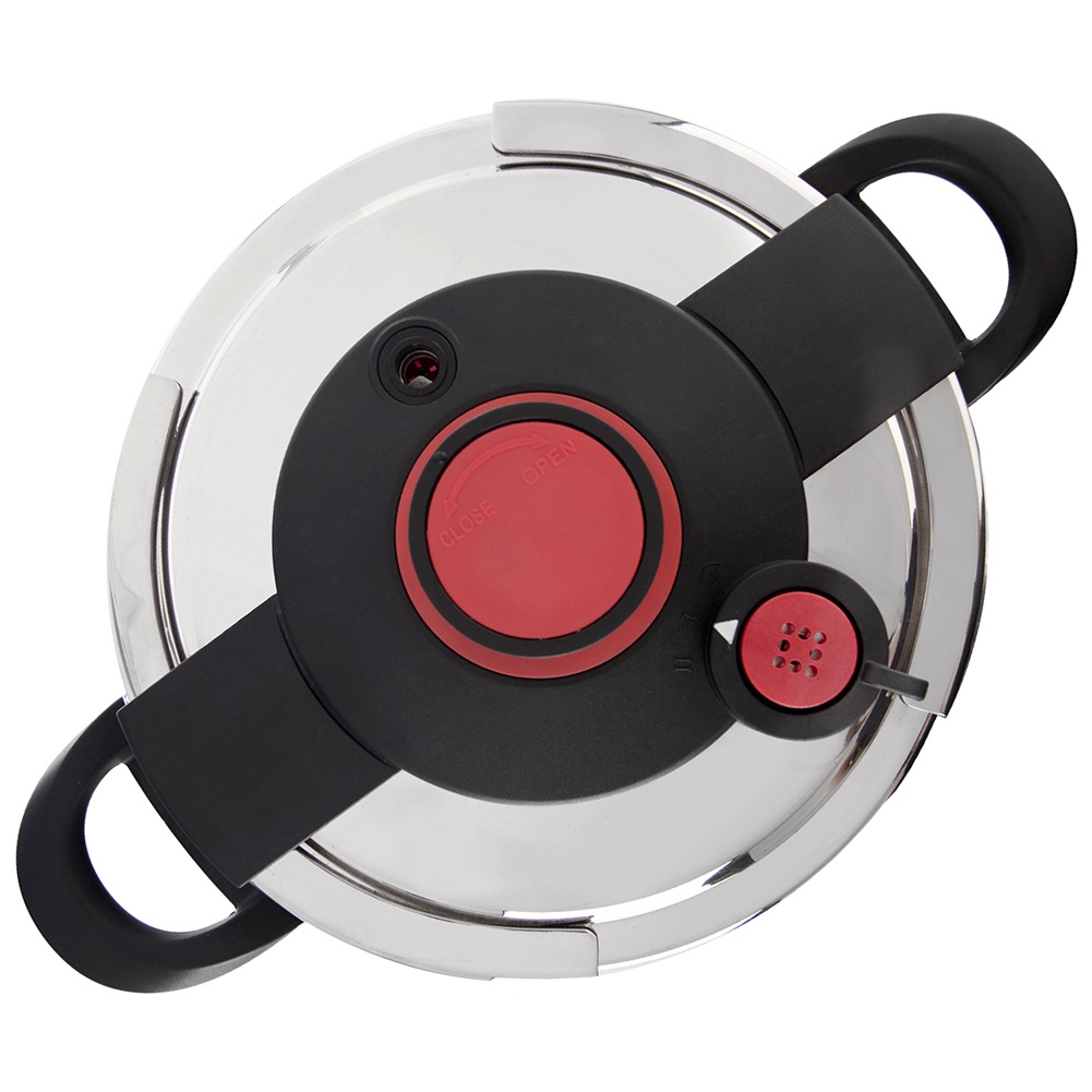 Szybkowar o pojemności 5 l z automatycznym zamykaniem. Wykonany ze stali nierdzewnej, posiada dwa programy gotowania oraz opcję uwalniania pary.