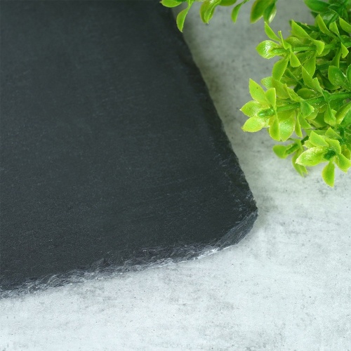 - Naturalny kamień - Wykonana z naturalnego łupka kamiennego w czarnym kolorze. Ma chropowatą powierzchnię i nieoszlifowane krawędzie, co dodatkowo podkreśla jej oryginalny wygląd.