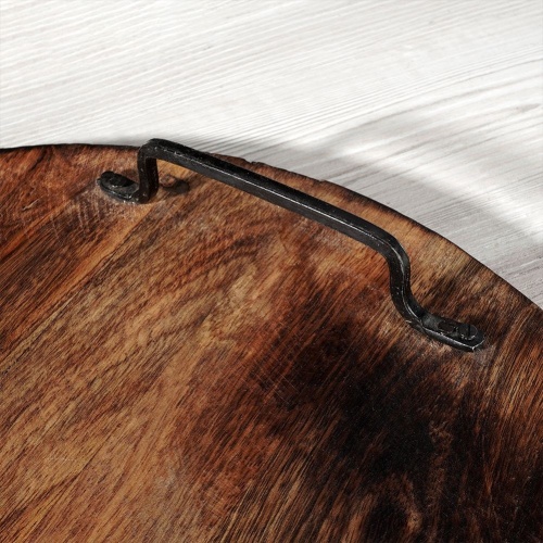 - DREWNIANA - Wytrzymała i solidna deska wykonana metodą rzemieślniczą z egzotycznego drewna mangowca. Okrągła deska do krojenia i serwowania wykonana jest z naturalnych materiałów, więc jej średnica może różnić się w zależności od deski od 39 do 40 cm. Grubość deski wynosi 2 cm.