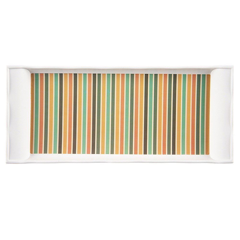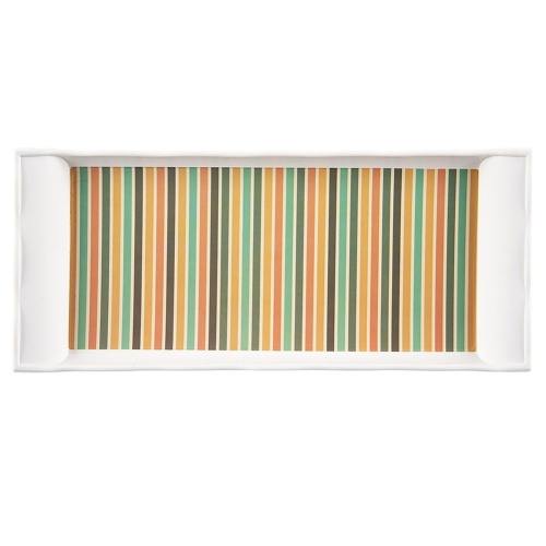 - Solidna i wytrzymała - Wykonana jest z najwyższej jakości tworzywa w białym kolorze. Wewnętrzna część tacy jest w kolorowe pasy.