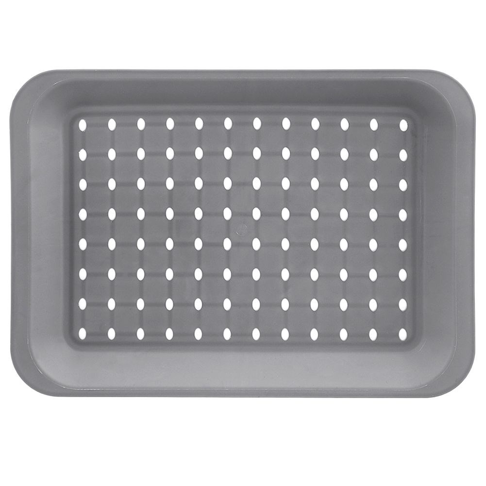 Prostokątna taca kuchenna. Wykonana z wysokiej jakości tworzywa w kolorze szarym. Posiada antypoślizgową powierzchnię oraz antypoślizgowy spód.