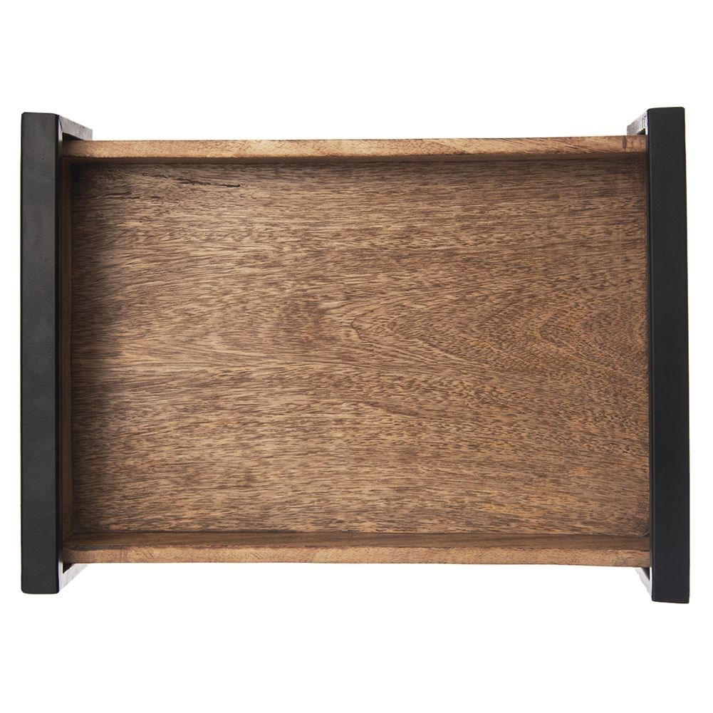 Prostokątna taca do serwowania dań i przekąsek. Wykonana z egzotycznego drewna mango. Wyposażona w wygodne, metalowe uchwyty. Niezwykle solidna, nie wykrzywia się.