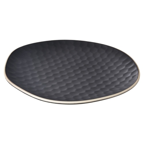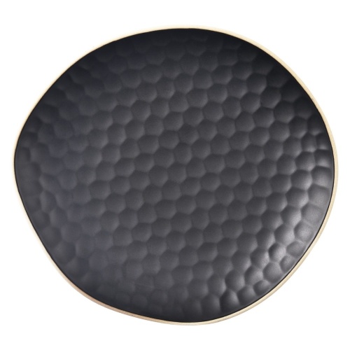 - Wykonany z kamionki - Wykonany z wysokiej jakości kamionki w kolorze czarnym. Zewnętrzny dekor talerzyka przypomina plaster miodu. Odpowiednio użytkowany posłuży długie lata.