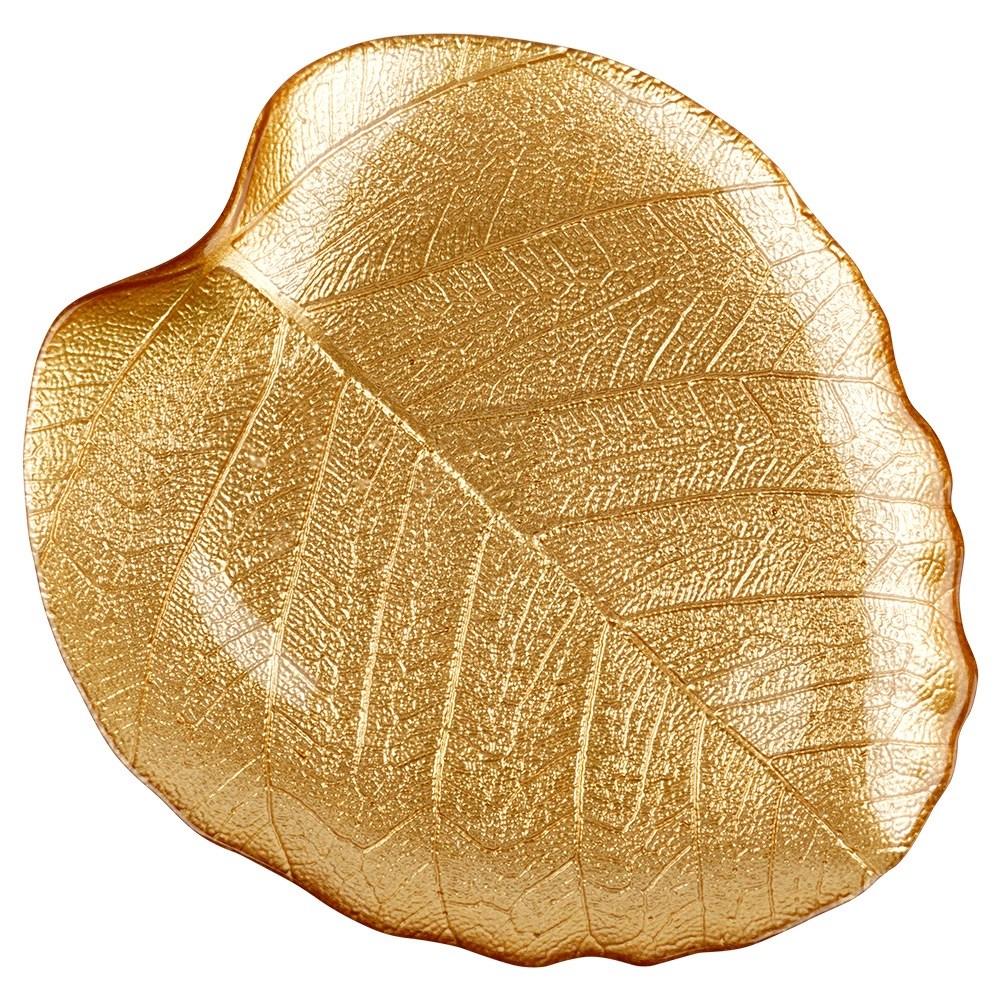 Talerz do serwowania szklany złoty liść 27,5x24 cm VILDE