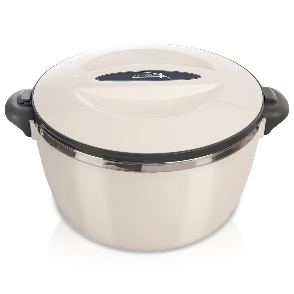 - Termos obiadowy o pojemności 3,5 l - Termomisa zapewni utrzymywanie ciepła lub zimna przechowywanych potraw. Termos obiadowy ma pojemność 3,5 l. Termomisa ma wymiary 31 x 24 x 16 cm. Termomisa nie jest w 100% szczelna, żywność należy przenosić w pozycji pionowej by uniknąć wylania zawartości. Termomisa z serii Termo.