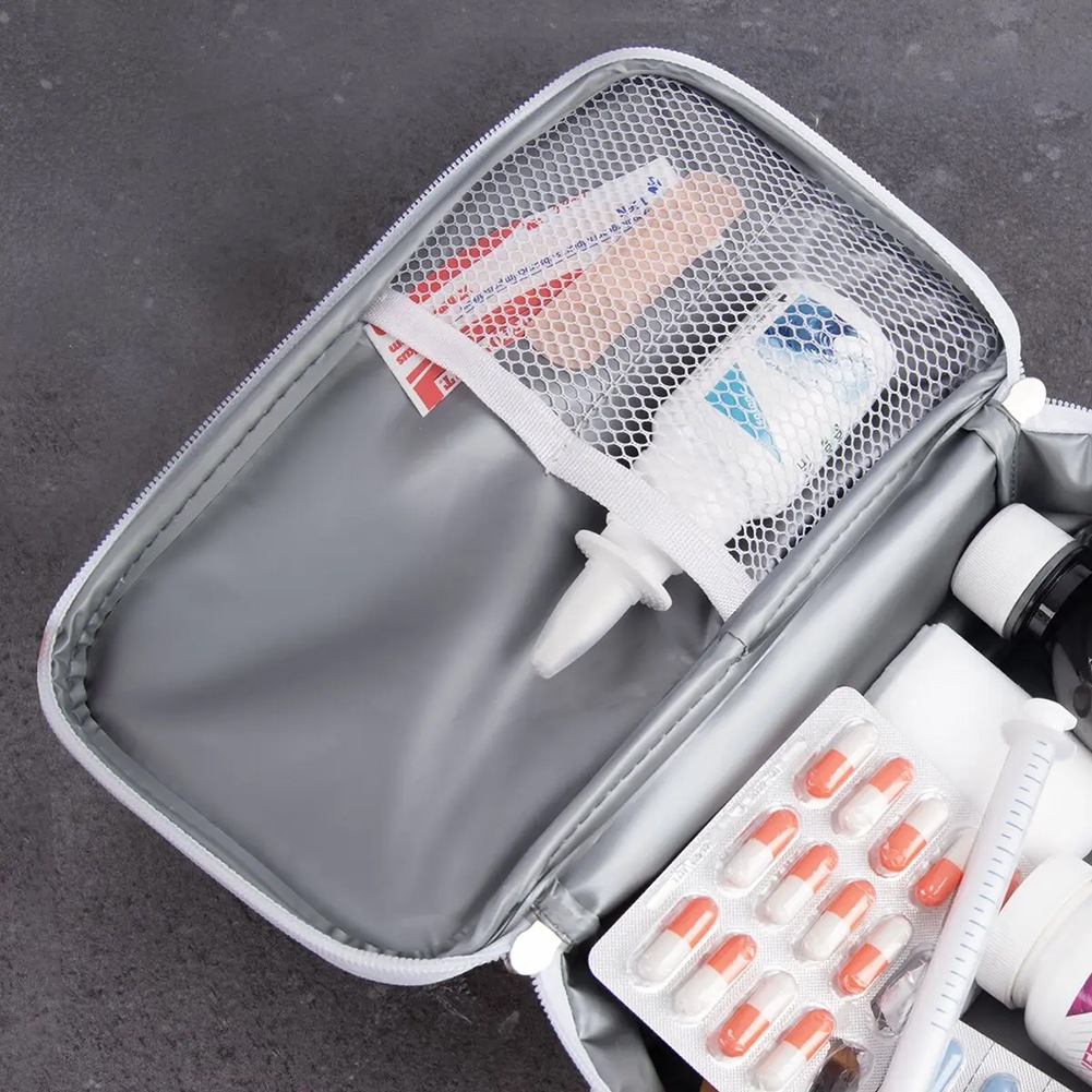 - Wygodna organizacja zawartości - Wewnątrz znajduje się siateczkowa kieszeń z dwiema przegrodami, umożliwiająca uporządkowanie drobnych akcesoriów i leków.