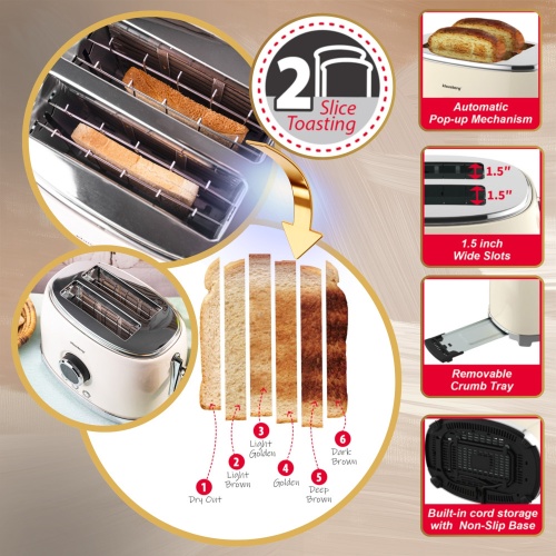 - 6 poziomów opiekania – precyzyjne dopasowanie stopnia przypieczenia