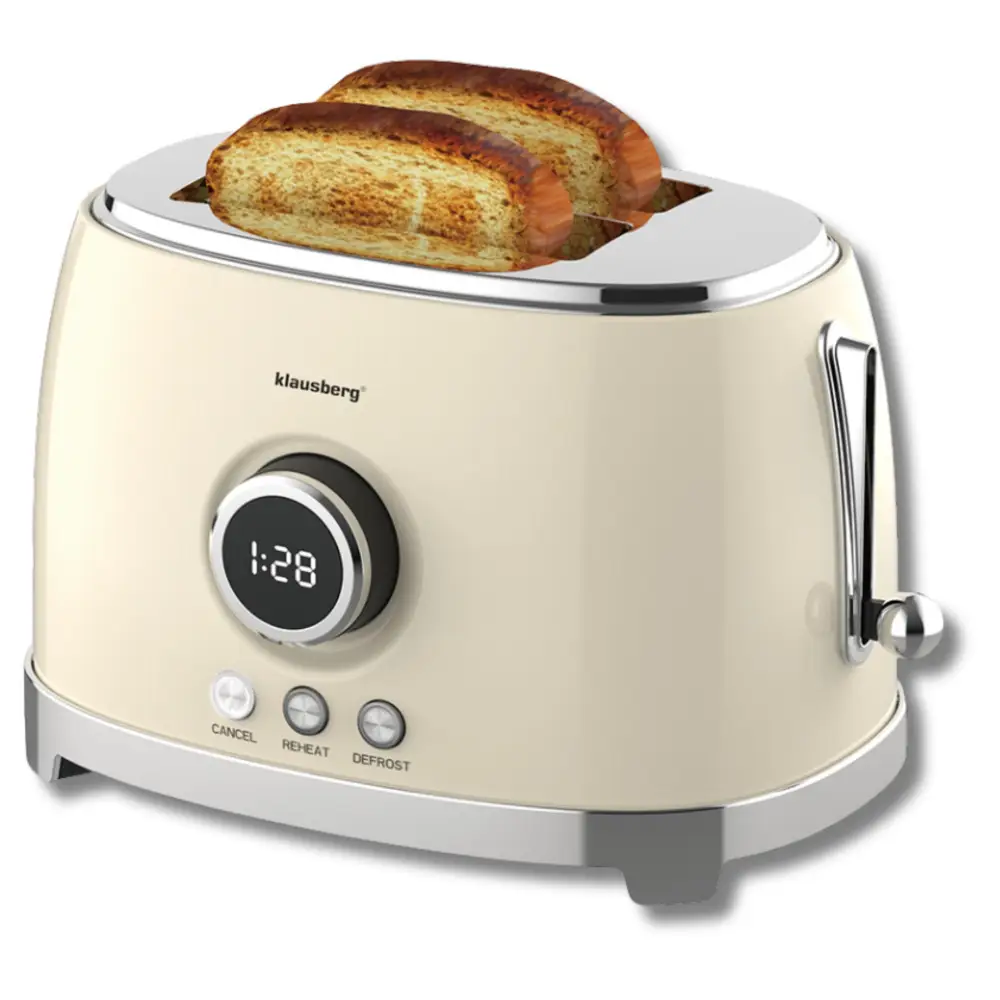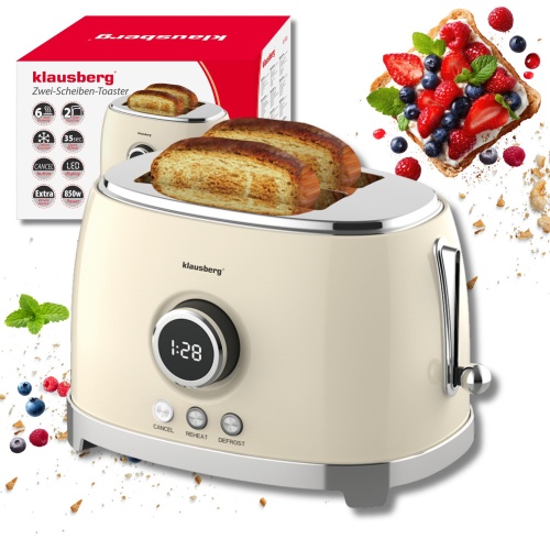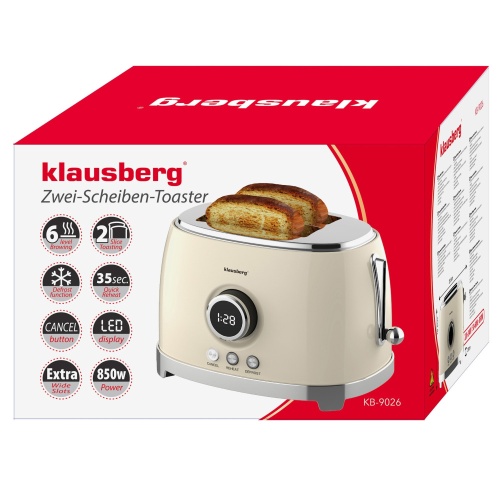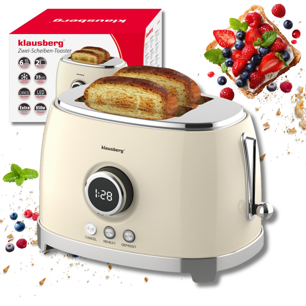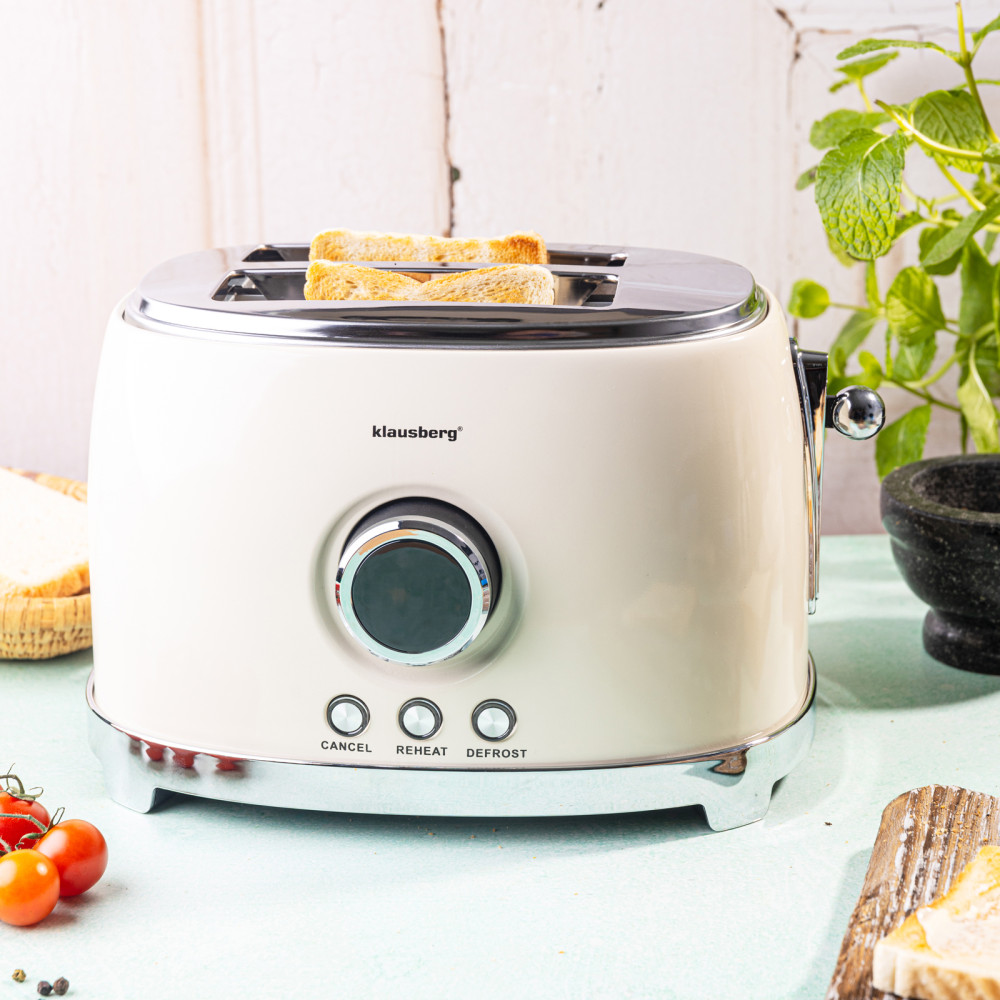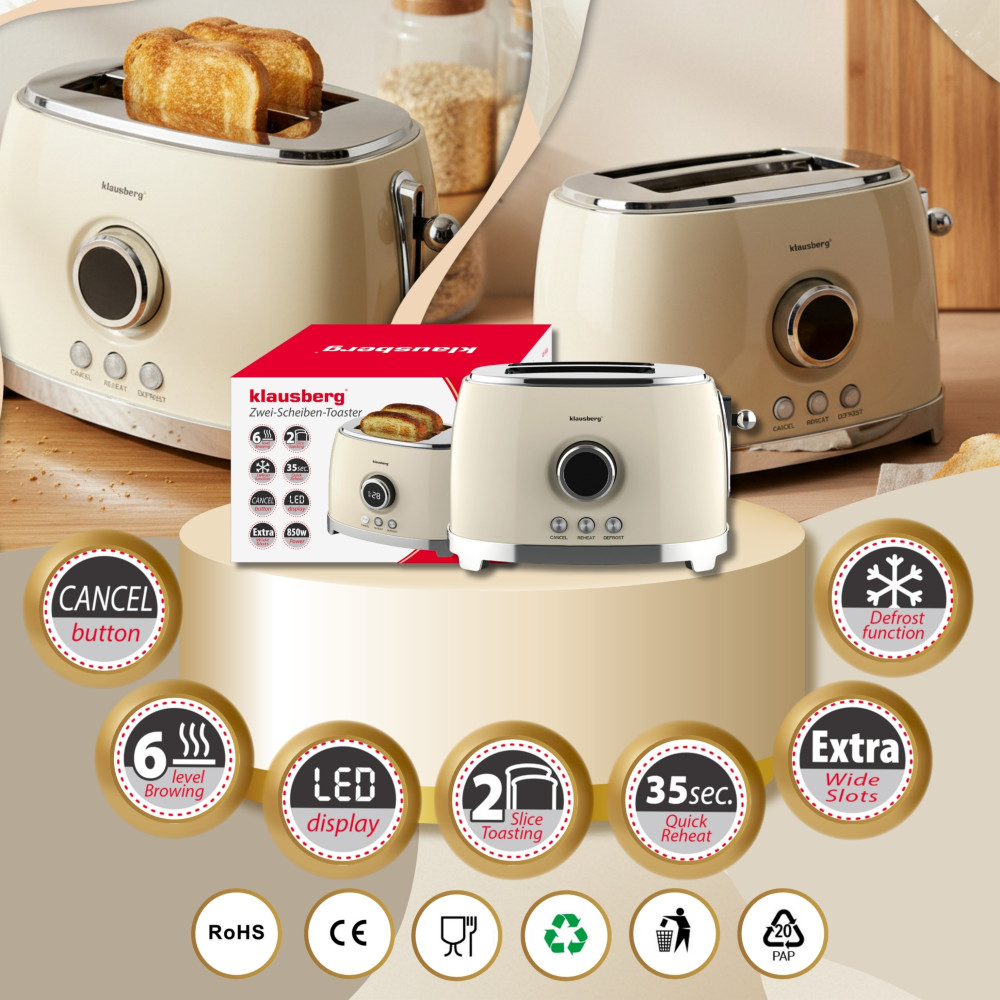 Toster na 2 kromki kieszenie, beżowy, retro, wyświetlacz LED, KLAUSBERG KB-9026