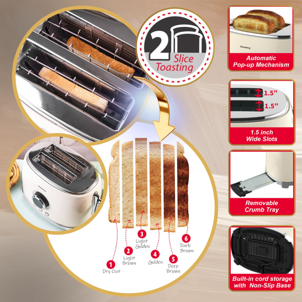 Model KLAUSBERG KB-9026 to wyjątkowy toster inspirowany stylem retro, który łączy estetykę z praktycznymi rozwiązaniami. Kremowa obudowa w połączeniu z chromowanymi detalami sprawia, że urządzenie doskonale prezentuje się zarówno w klasycznych, jak i nowoczesnych wnętrzach. Dzięki zaawansowanym funkcjom przygotujesz tosty dokładnie takie, jakie lubisz – szybko i wygodnie.