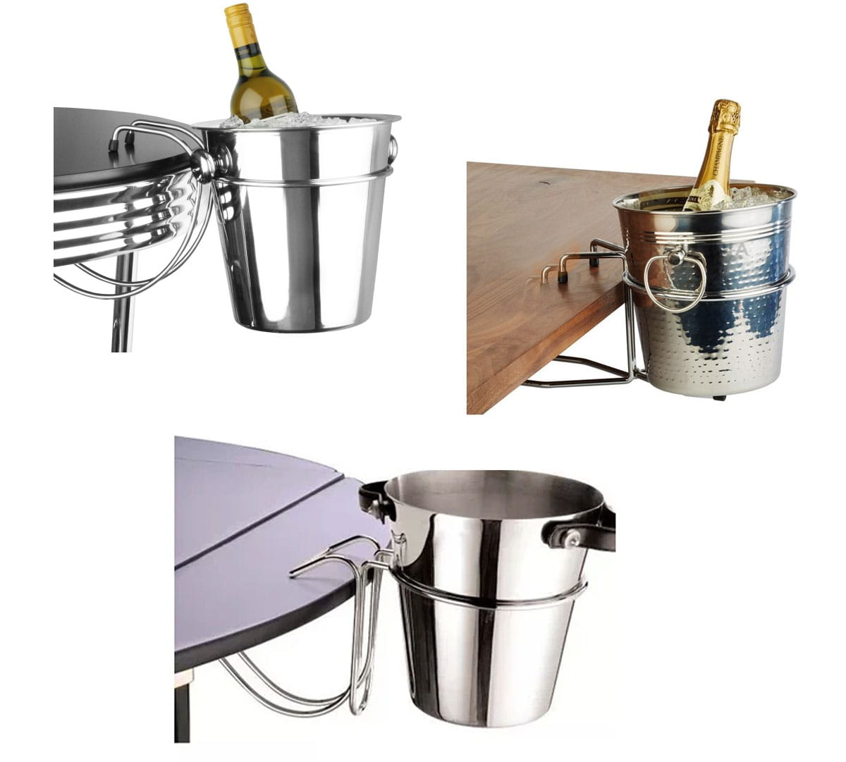Uchwyt do wiaderka do szampana mocowany do stołu KINGHOFF. Wykonany z chromowanej stali. Produkt idealnie sprawdzi się w restauracjach, domach weselnych czy salach bankietowych podczas imprez biznesowych czy rodzinnych. Zawieszony z boku stołu pozwoli zaoszczędzić miejsce jednocześnie umożliwiając swobodny dostęp do schłodzonego szampana.