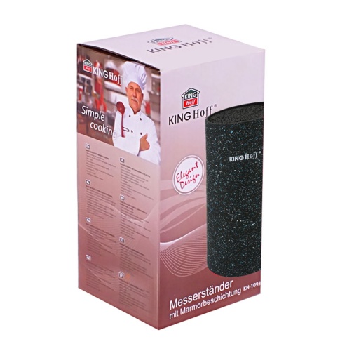 Uniwersalny stojak na noże KINGHOFF z wkładem z nitek polipropylenu wykonany z akrylu pokrytego silikonem. Nowoczesny i prosty wzór idealnie wpasuje się w wystrój kuchni, dzięki niemu, noże już zawsze będą uporządkowane, a zarazem na wyciągnięcie ręki. Wewnątrz stojaka umieszczono wkład z nitek polipropylenu, które umożliwiają przechowywanie noży o dowolnych długościach i szerokościach jeżeli tylko zmieszczą się w stojaku.