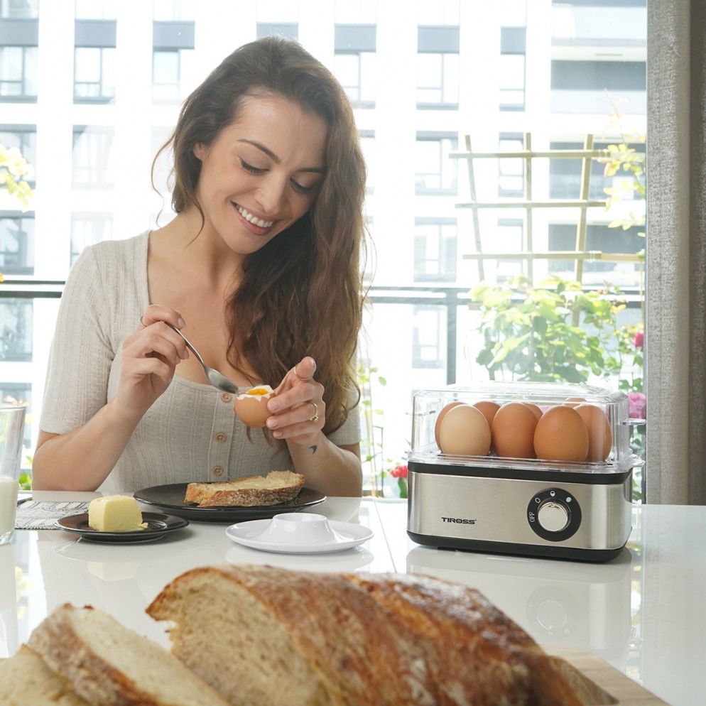 Urządzenie do gotowania jajek do 8 jajek, 3 tryby TIROSS TS-2302 Profesjonalny jajowar TS2302 to niezbędne urządzenie każdego miłośnika kulinarnych eksperymentów